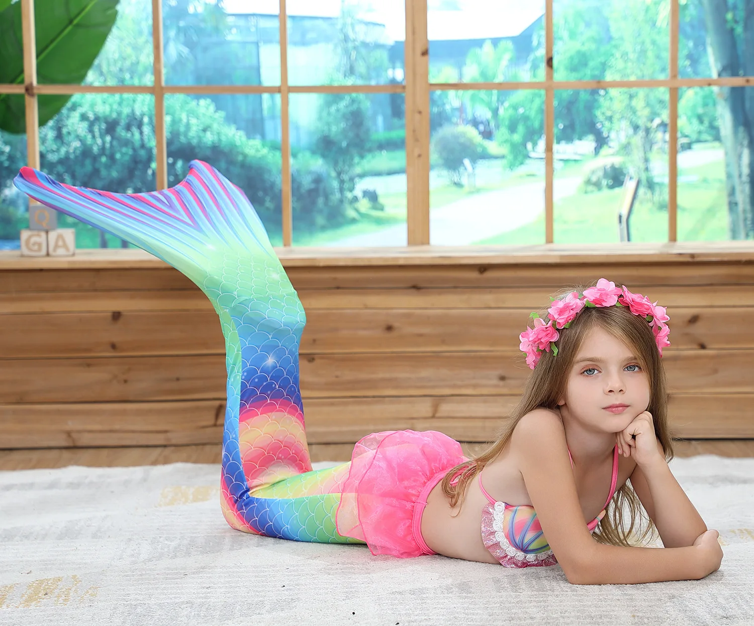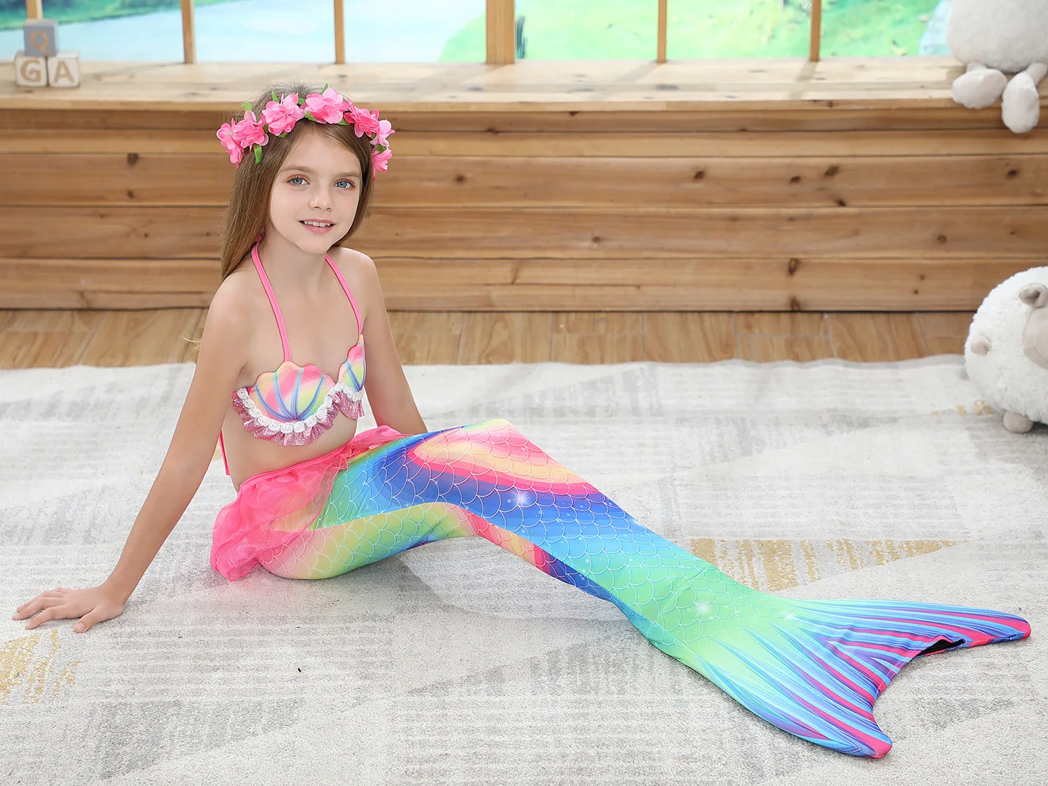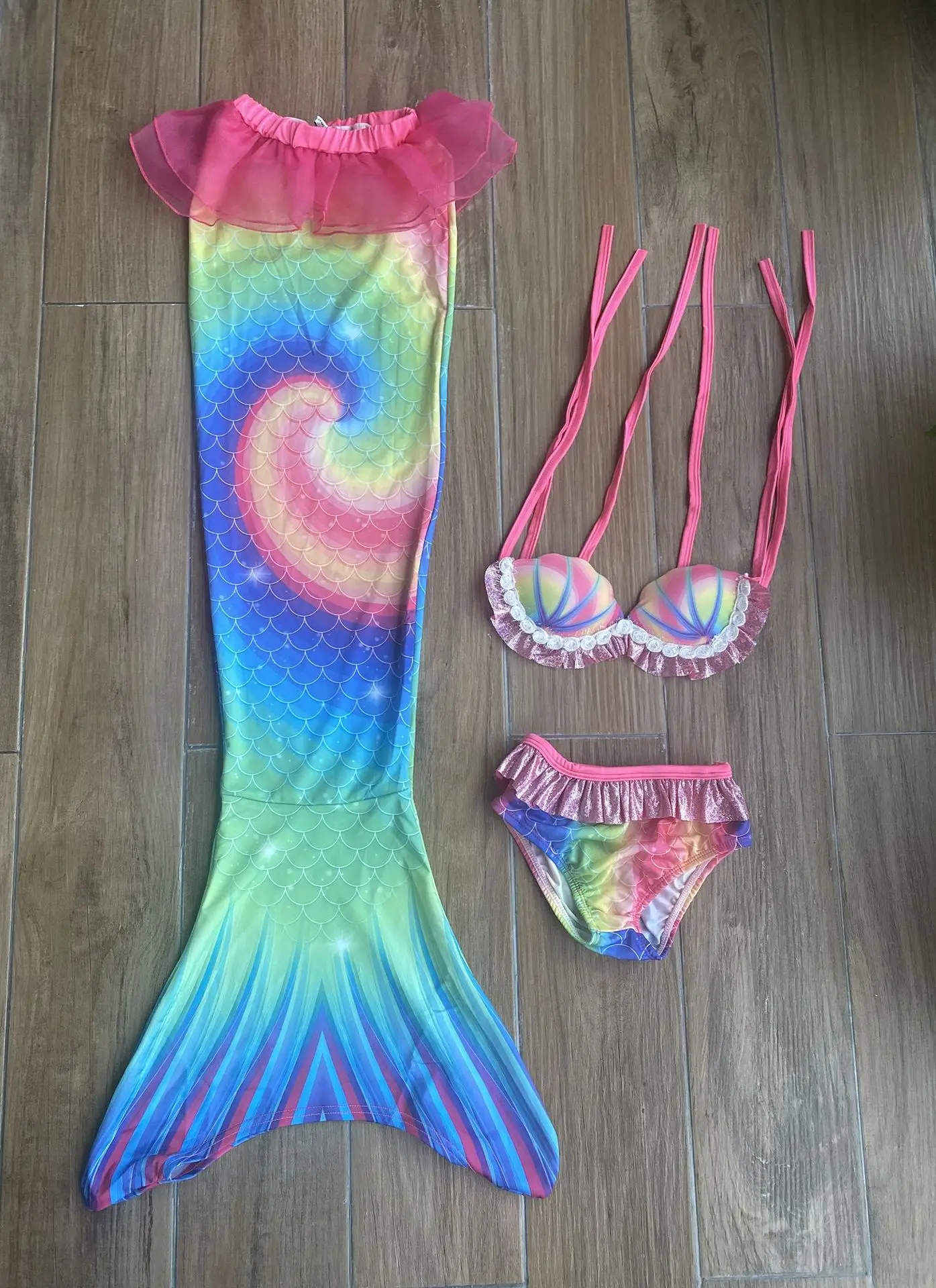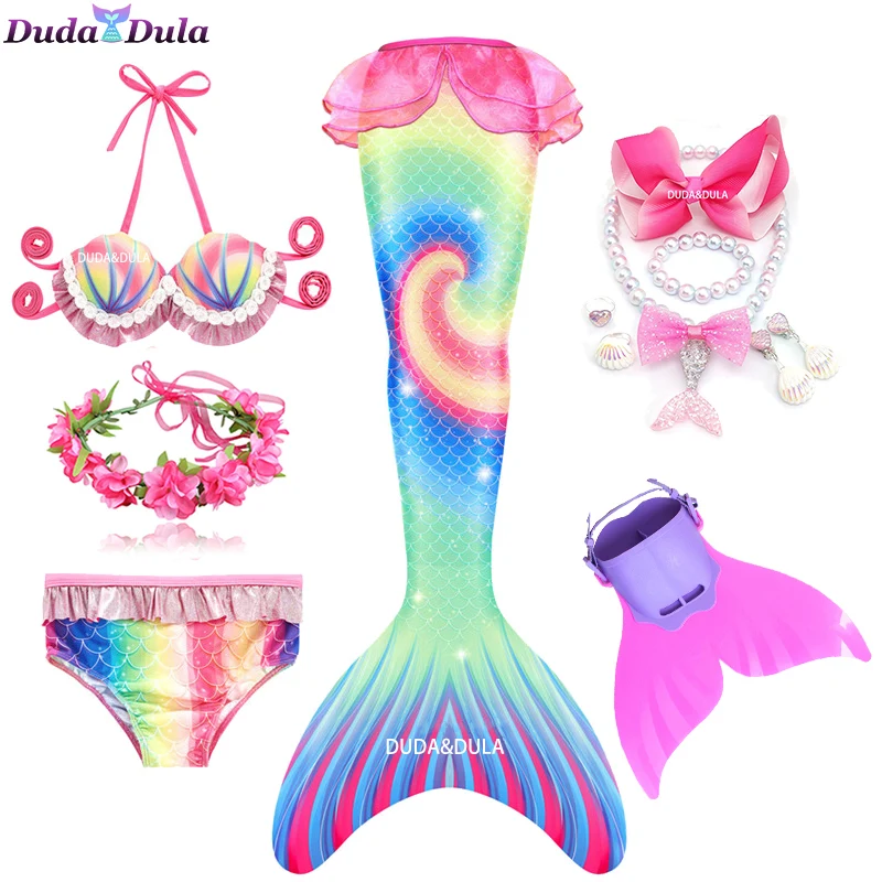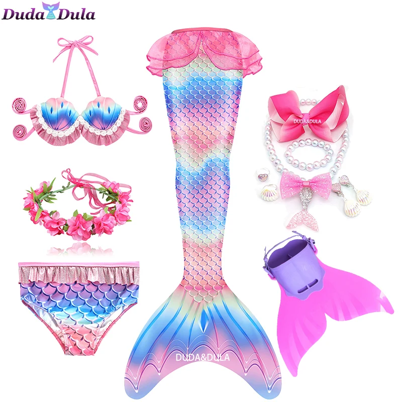 Женский купальный костюм с хвостом русалки и плавниками, бикини, купальный костюм, платье для девочек с моноластами для плавания, косплей на Хэллоуин