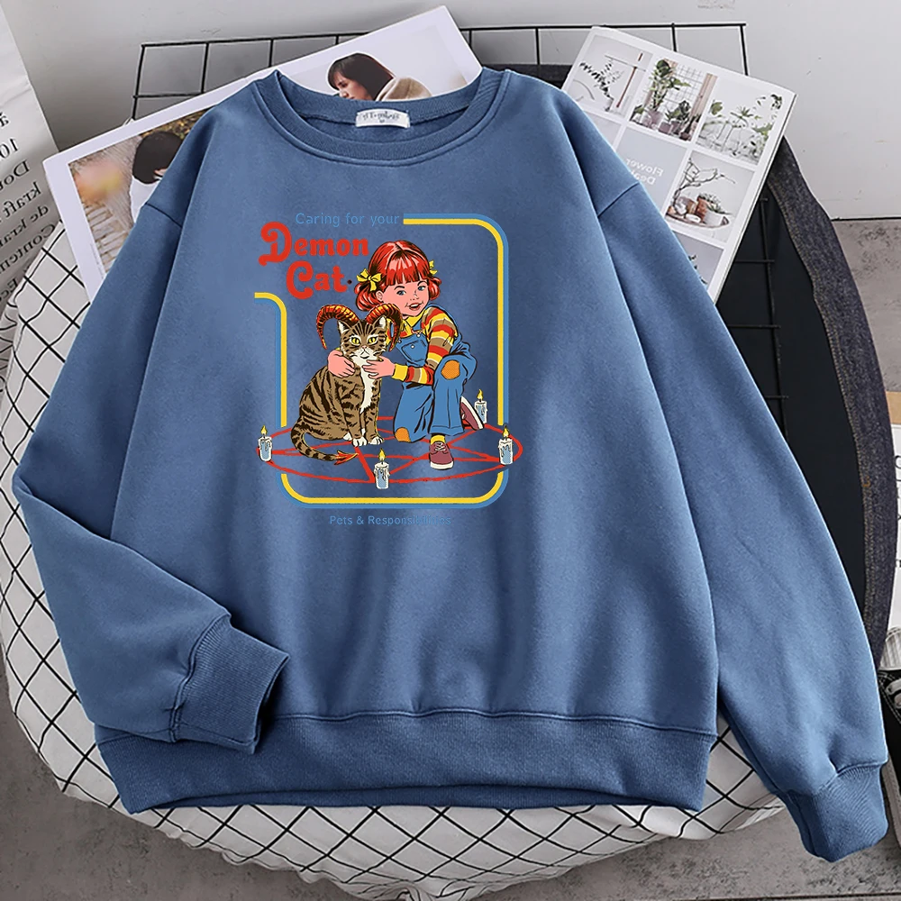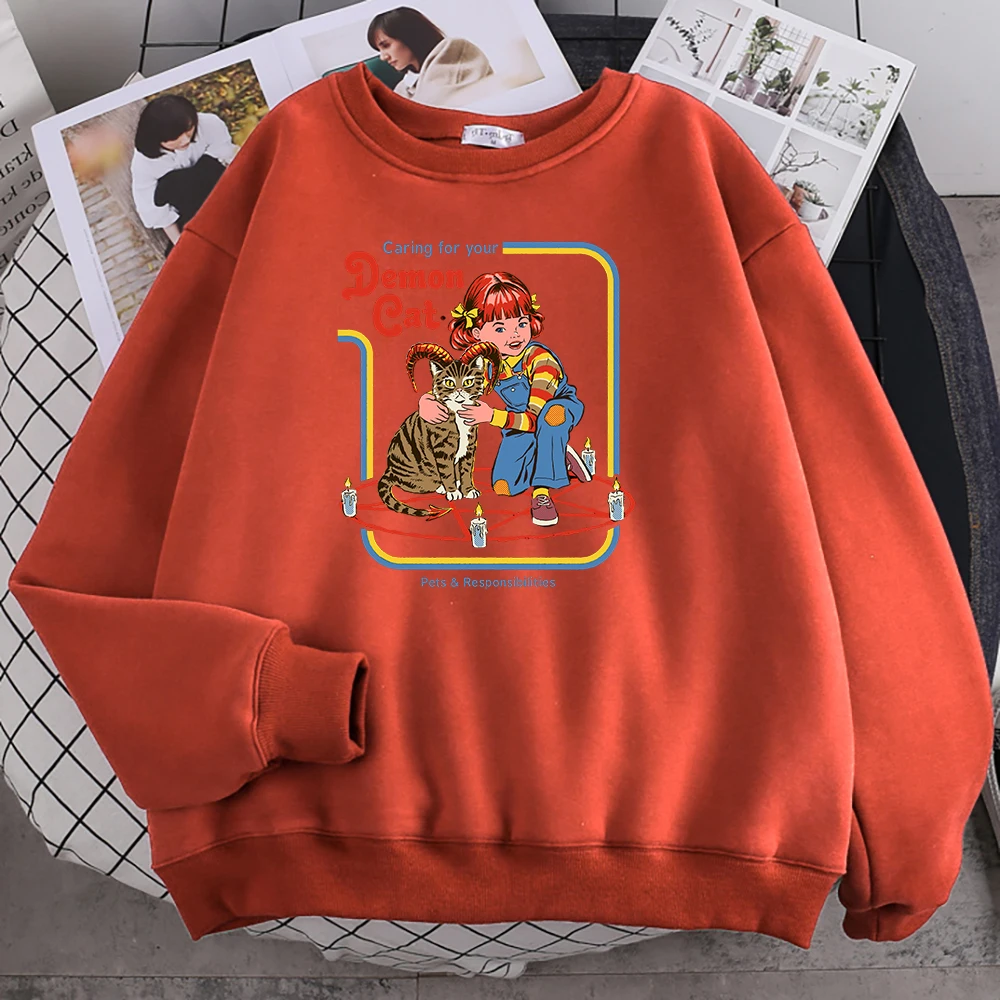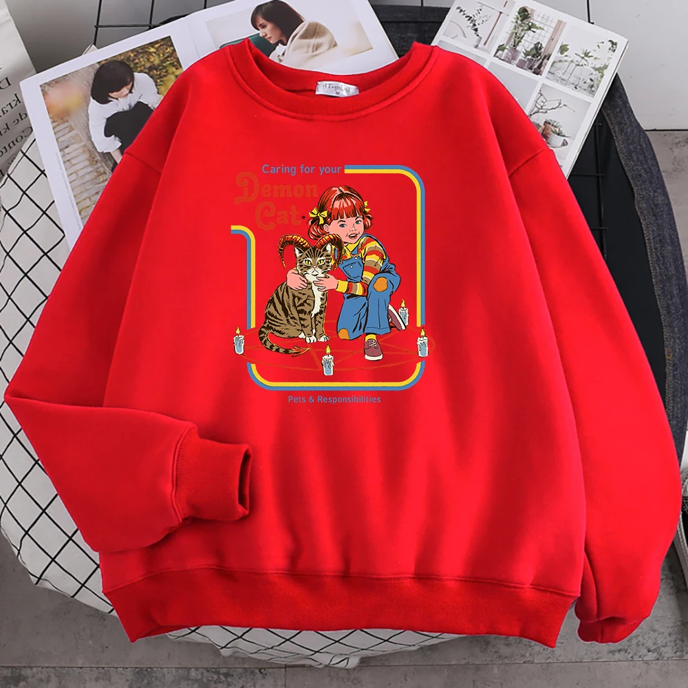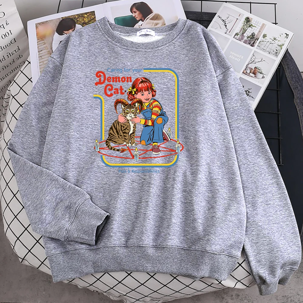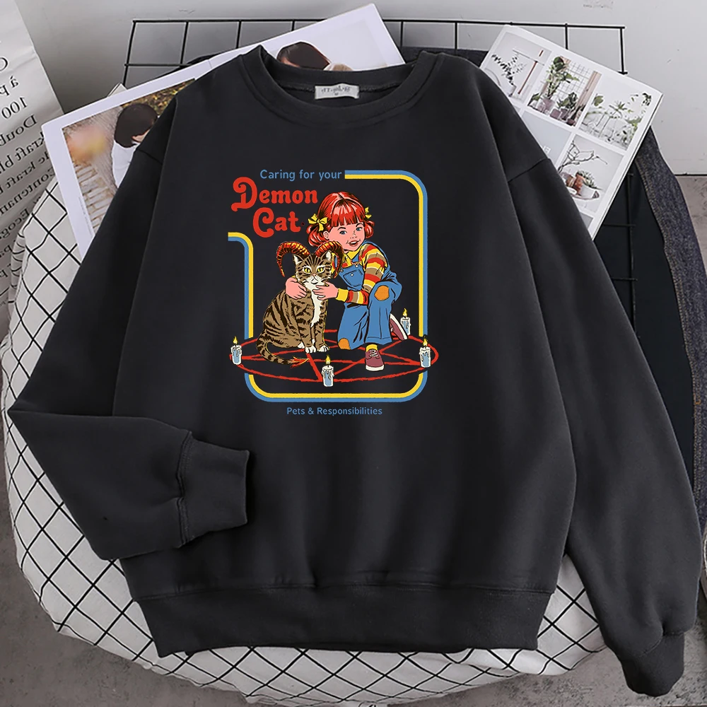 Женская толстовка с капюшоном и принтом в виде кошки-демона