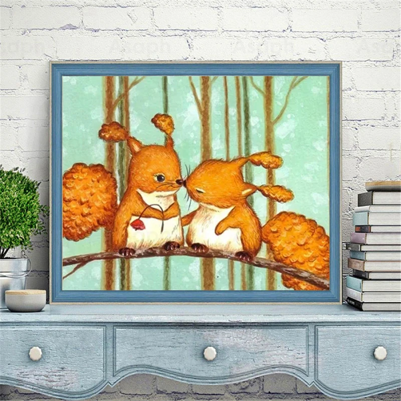 Мультяшный пейзаж медведь белка Сделай Сам 5D алмазная живопись полная квадратная и круглая вышивка мозаика вышивка крестиком украшение для дома