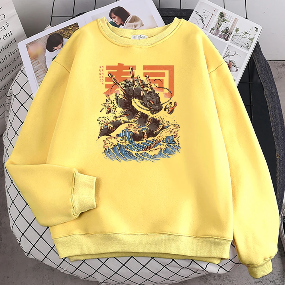 Япония укиё E стиль суши дракон принты женские толстовки винтажные свободные толстовки повседневные флисовые кофты простые женские топы с круглым вырезом