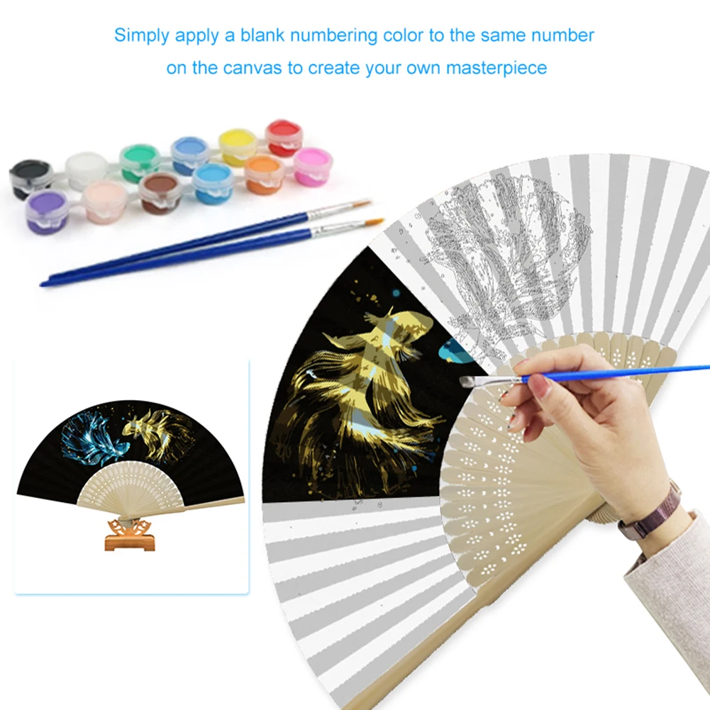 Набор для рисования по номерам на холсте, раскрашенный вручную веер