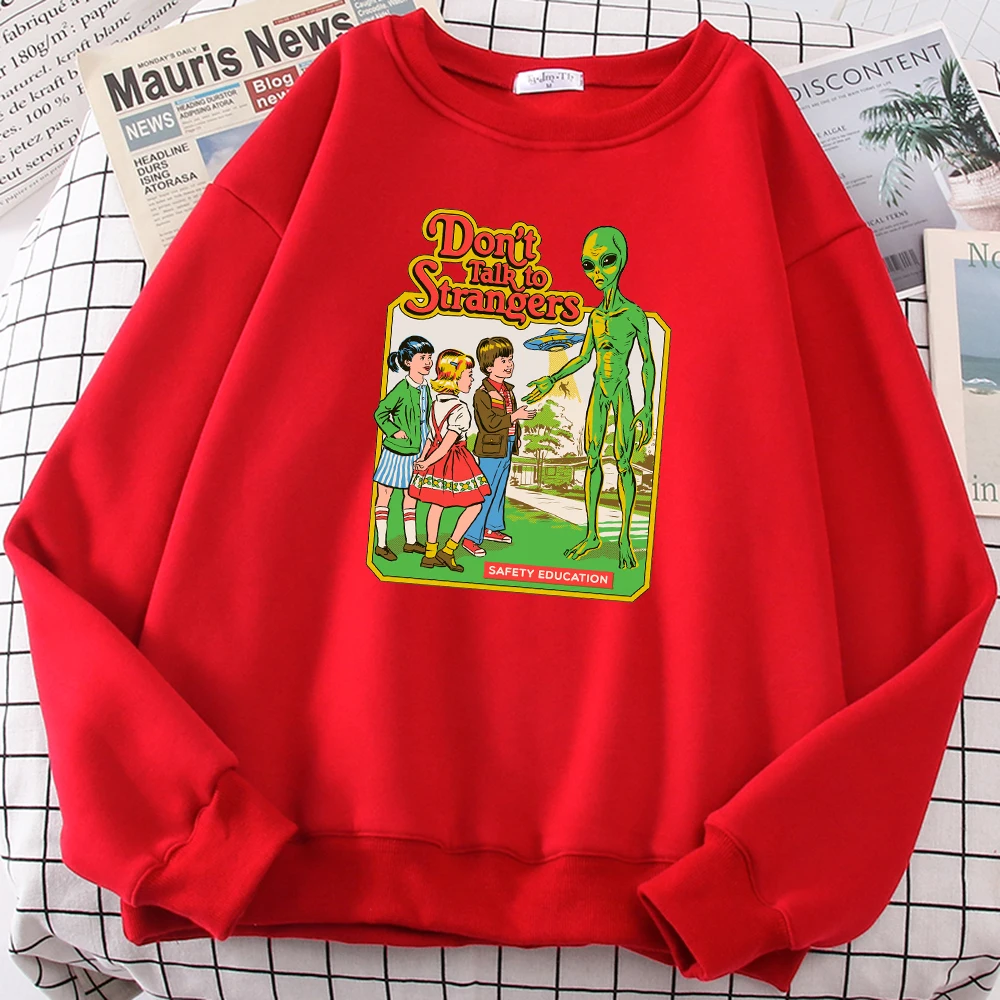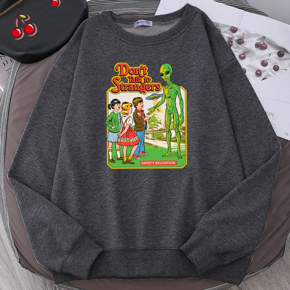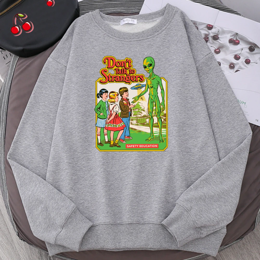 Не разговаривайте с незнакомцами, женский свитшот с принтом, модный свободный худи, винтажные флисовые теплые толстовки, осенняя женская одежда с круглым вырезом