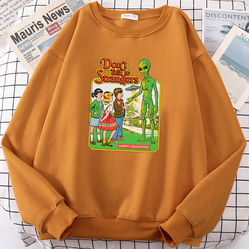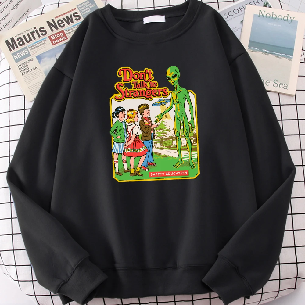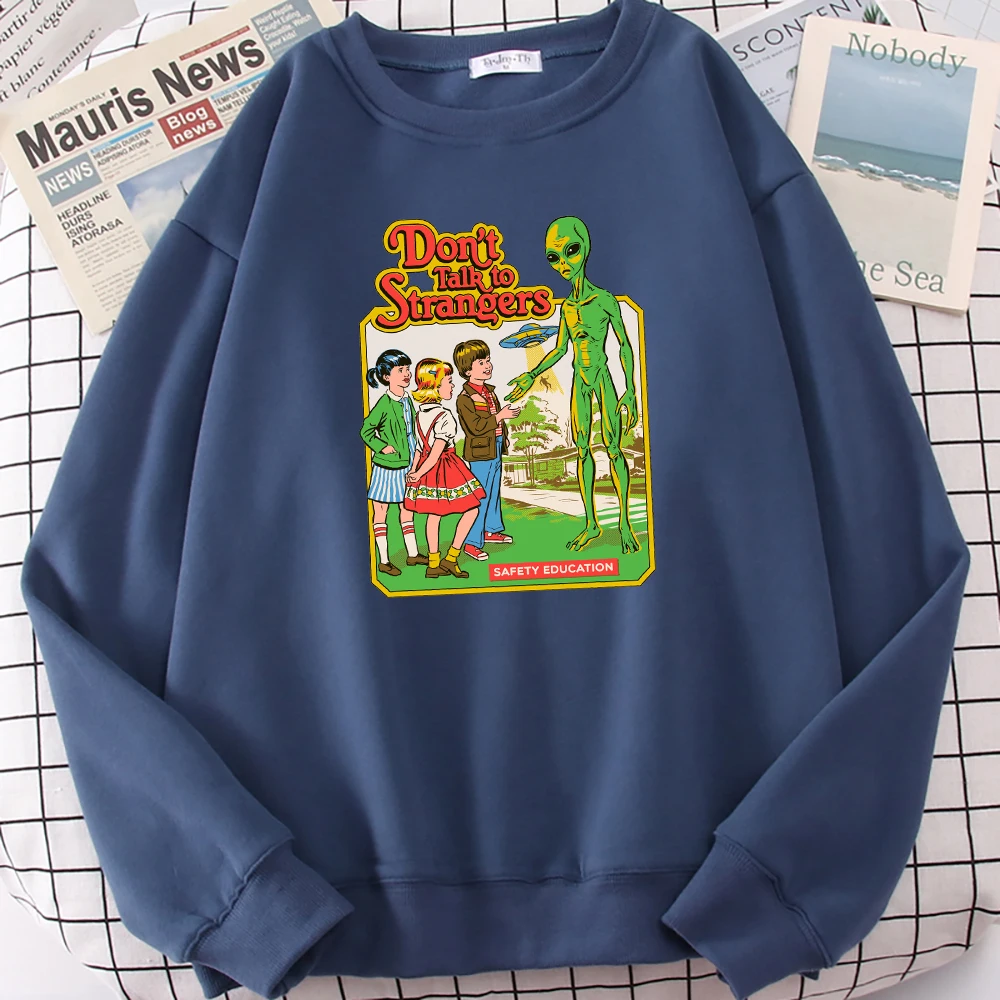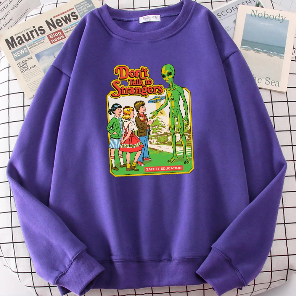 Не разговаривайте с незнакомцами, женский свитшот с принтом, модный свободный худи, винтажные флисовые теплые толстовки, осенняя женская одежда с круглым вырезом