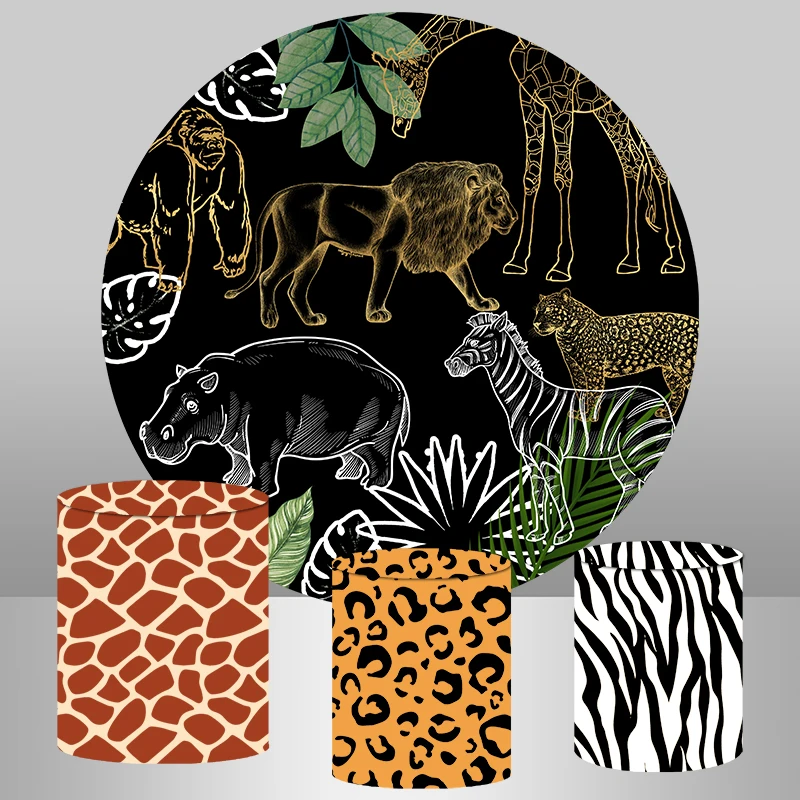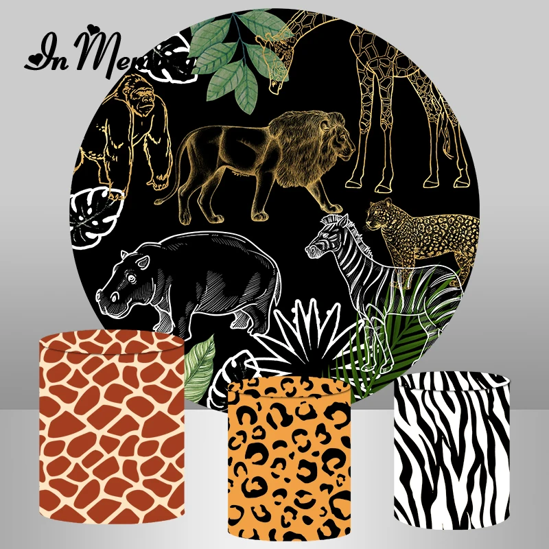 InMemory круглые чехлы с изображением животных, сафари, джунглей вечерние, для мальчиков, диких, один день рождения, фон для фотографий, индивидуальные чехлы