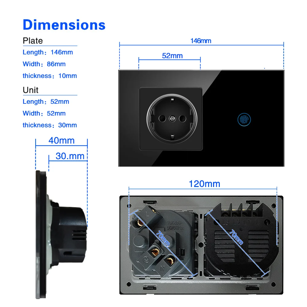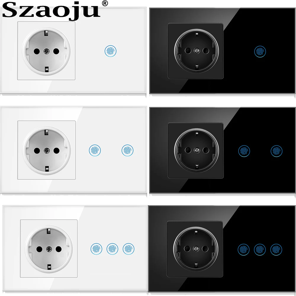 Умный выключатель Szaoju, 123 клавиши, 1 канал, сенсорный выключатель с европейской вилкой, настенная розетка, панель из хрусталя, подсветка, домашние настенные выключатели
