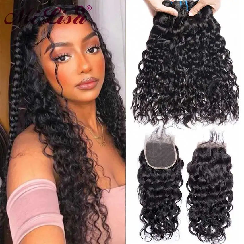 Волнистые человеческие волосы, пряди с закрытием, кружева, Remy, бразильские волосы, натуральные волнистые, 3/4 пряди, с закрытием, 30 дюймов