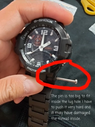 Ремешок сделан дешево. Он не подходит для Gschock GA1000, но в описании продукта для GA1000. Штифт был слишком большим, чтобы поместиться в отверстия для наконечников, я должен нажать его так трудно, чтобы соответствовать штифтам. Торцевой винт 1 шт. не подходит для шестигранной отвертки, поэтому он бесполезен и может ослабить браслет. Мне потребилось 30 минут, чтобы закрепить ремешок. Пряжка тонкая и недорогая, ее сложно зафиксировать. Хотя я получил товар перед расписанием, это так необычно, что он все еще показывает доставку, когда я отслеживаю его. Магазин реагировал на мои запросы. В целом, я очень разочарован и недоволен этим продуктом. Я не рекомендую это другим покупателям.