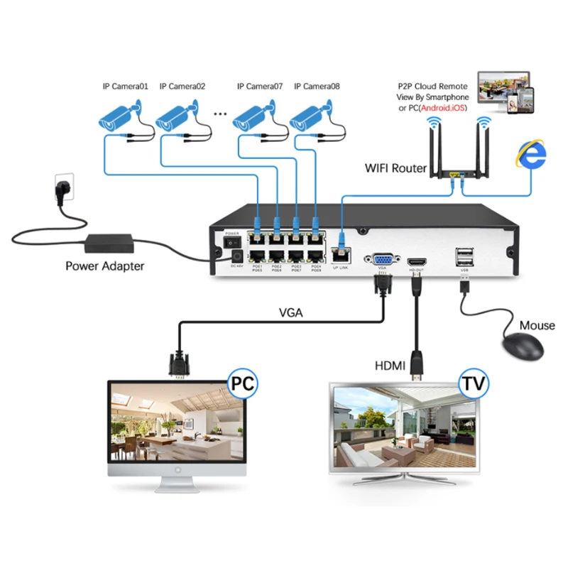4. Все NVR поддерживают протокол ONVFI и совместимы с другими брендами. Его также можно использовать без NVR;