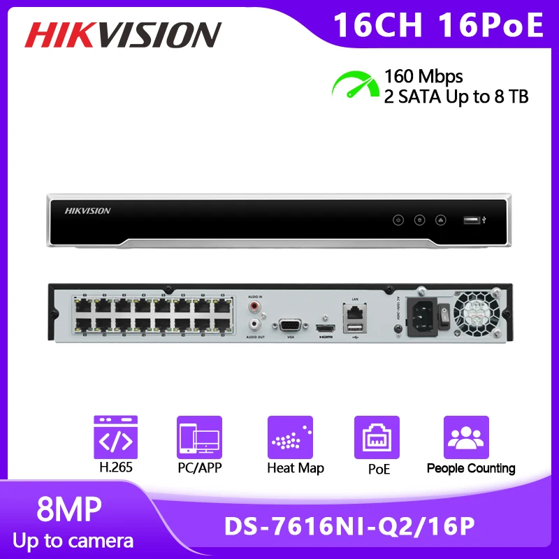 Сетевой видеорегистратор Hikvision, 16CH 1U 16 PoE 4K NVR DS-7616NI-Q216 P POE, с HDDs, H.265 +, умное воспроизведение, камеры видеонаблюдения для улицы