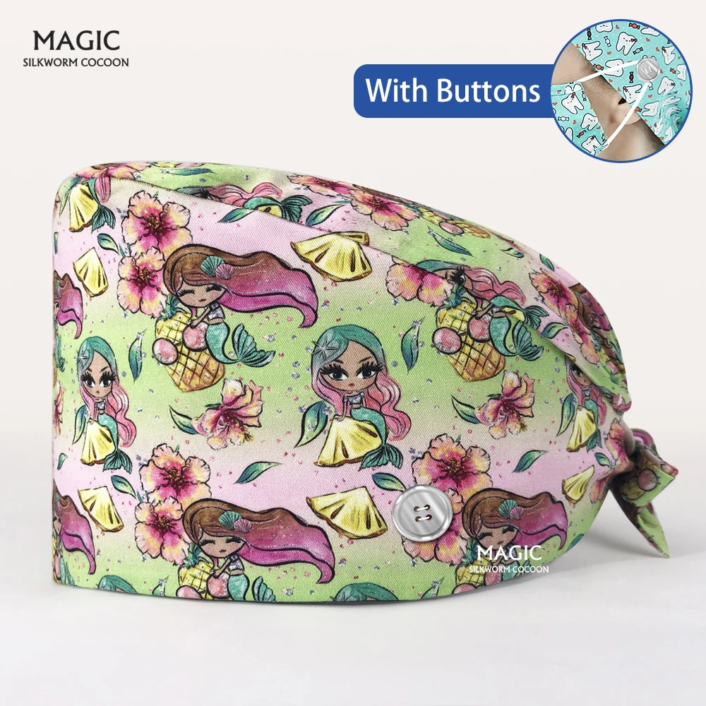 Шапка-медицинские шапочки для косметолога, мультяшный матовый принт...