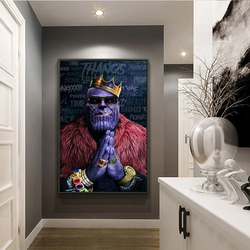 Постер и печать Фильмов Marvel Мстители, танос с короной, супергерой, холст, живопись, настенное искусство, гостиная, домашний декор