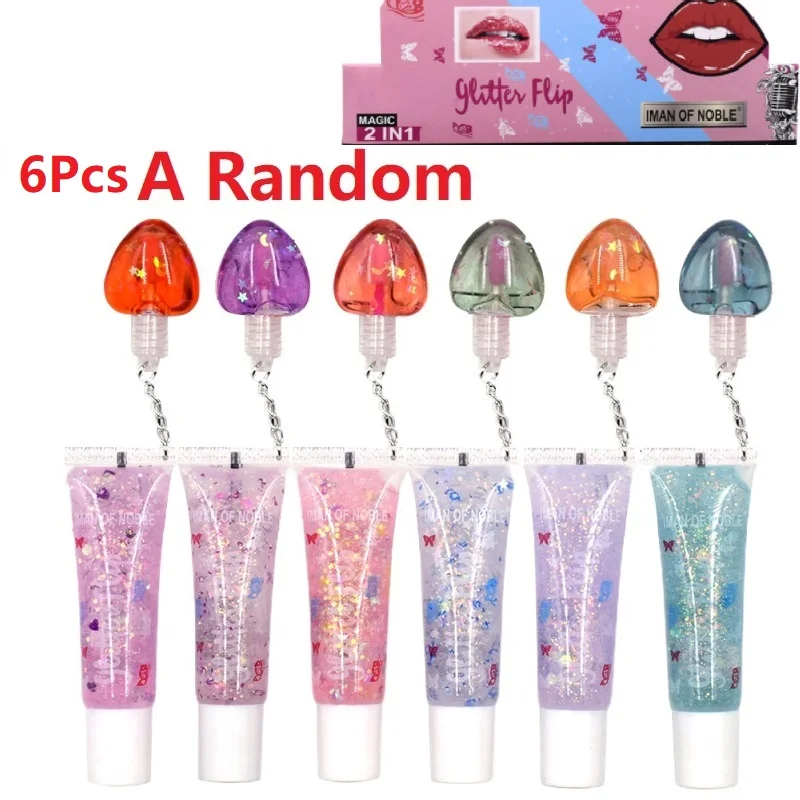 6 шт./лот, увлажняющий бальзам для губ, блеск для губ, блестящий, восстанавливающий, уменьшает линии губ, усиливает губы, Сексуальный макияж, блеск для губ, случайный TSLM2