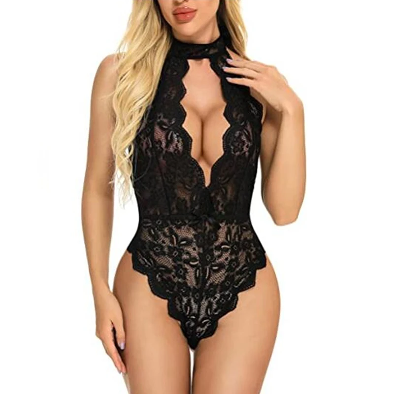 Женское Эротическое кружевное нижнее белье, сексуальное нижнее белье с бретелькой через шею