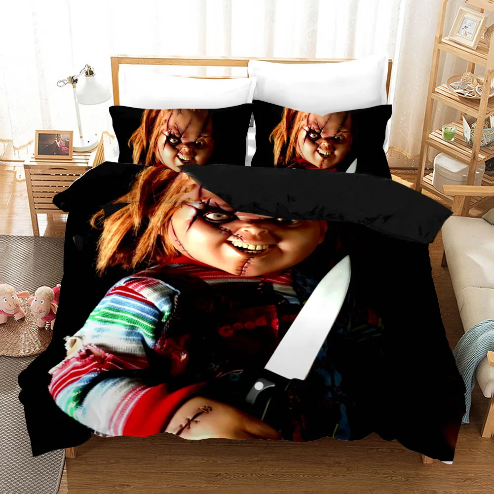 Новинка, ужасная кукла-марионетка Чаки, Комплект постельного белья, размер King Size, кино, детский игровой персонаж, пододеяльник, двойная кровать, одеяла, дети, мальчик, спальня
