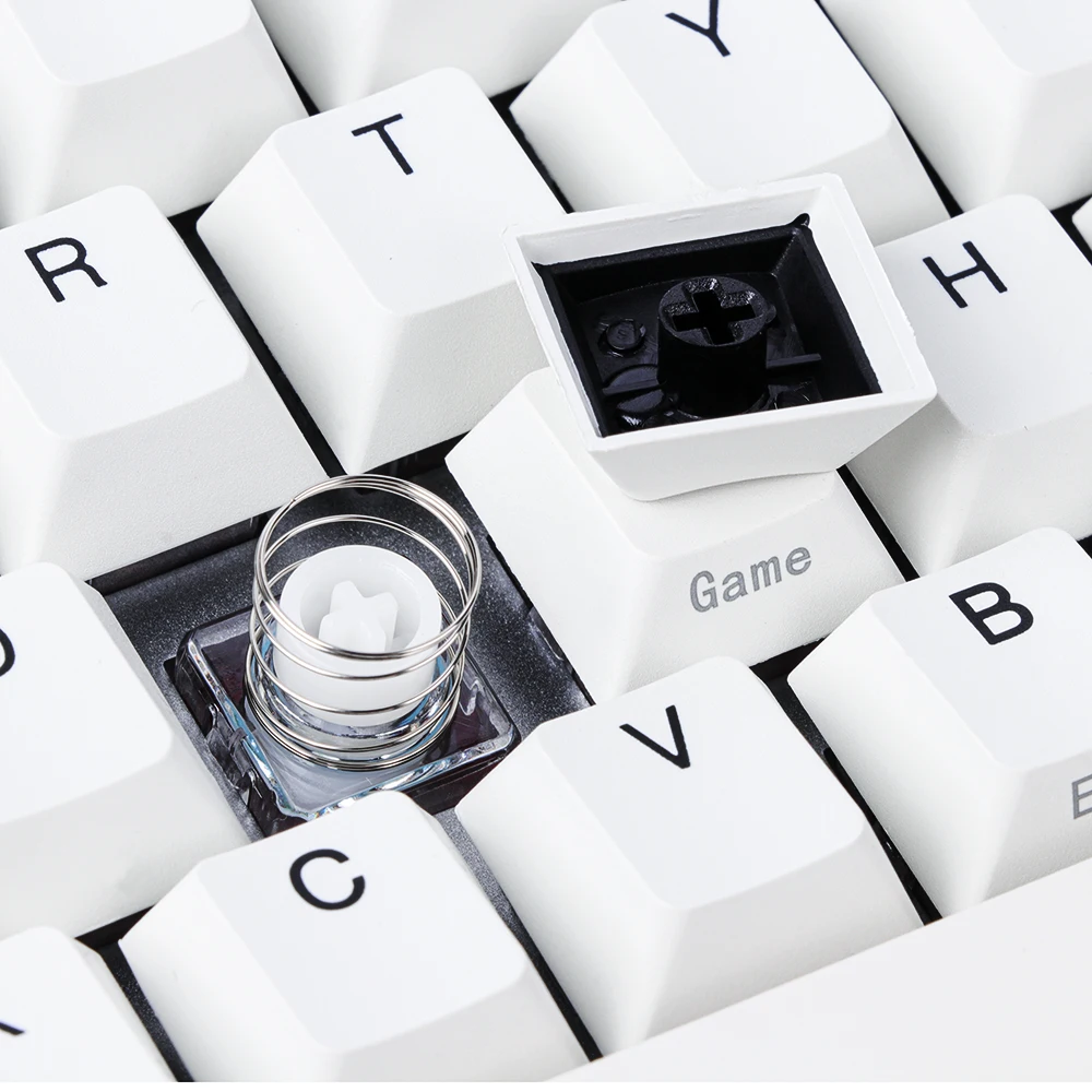 NiZ Plum x87 сочетает в себе бесшумную работу резиновой купольной клавиатуры с надежностью и тактильностью механической клавиатуры. Конструкция состоит из резинового купола, в котором находится слайдер, над которым находится спиральная пружина и печатная плата. 35g реле давления дает вам мягкое ощущение, механические плееры могут добавить весну 10g для увеличения перкуссии.