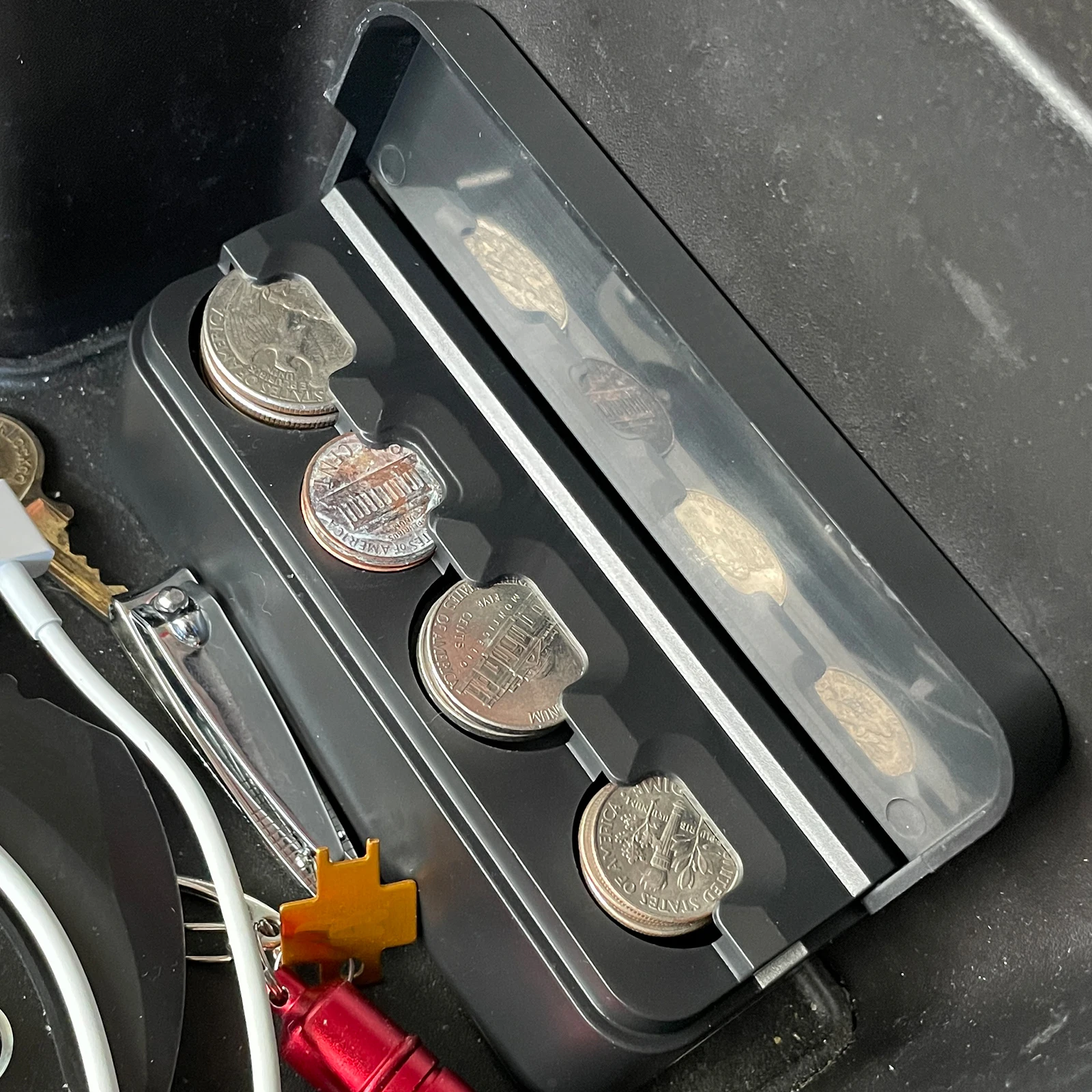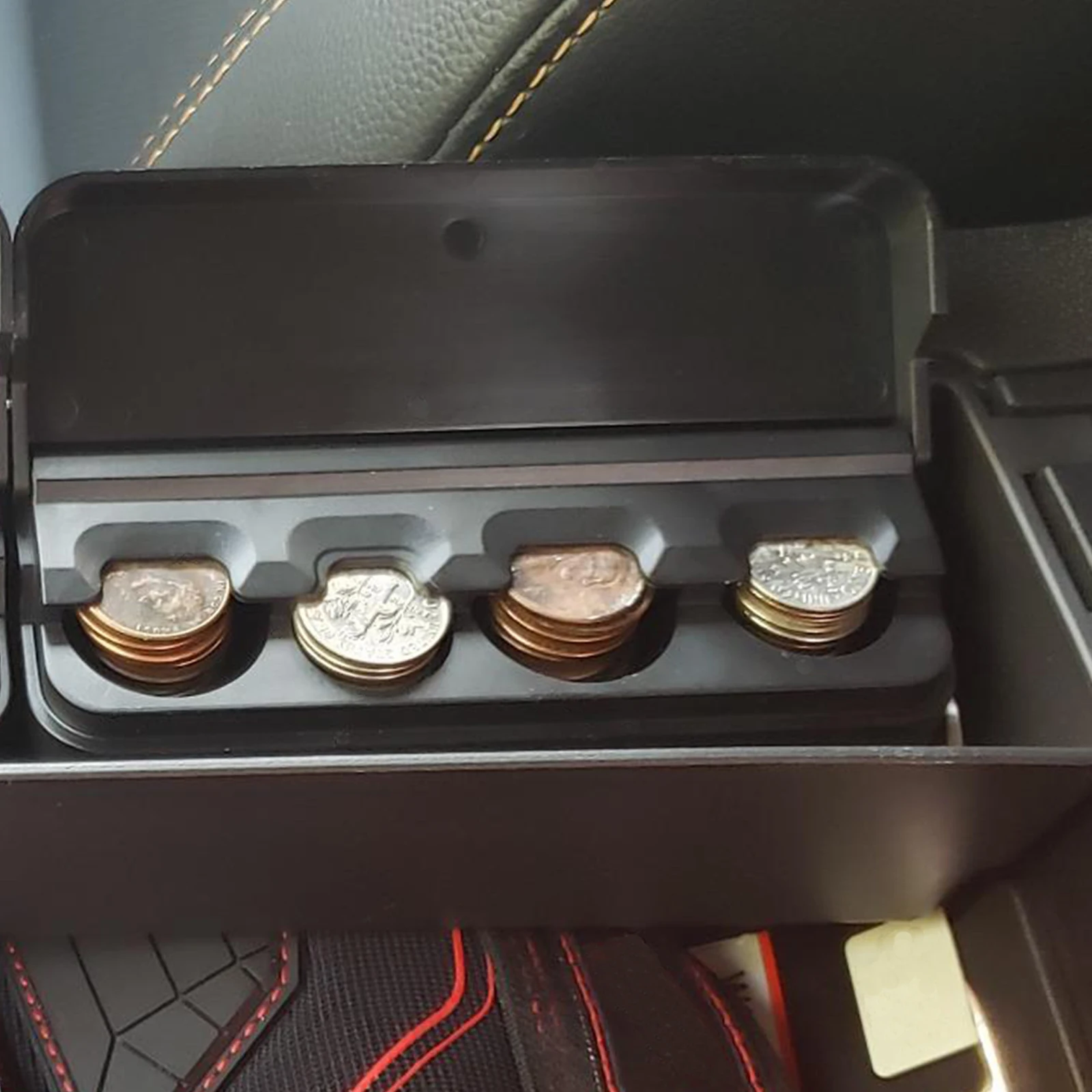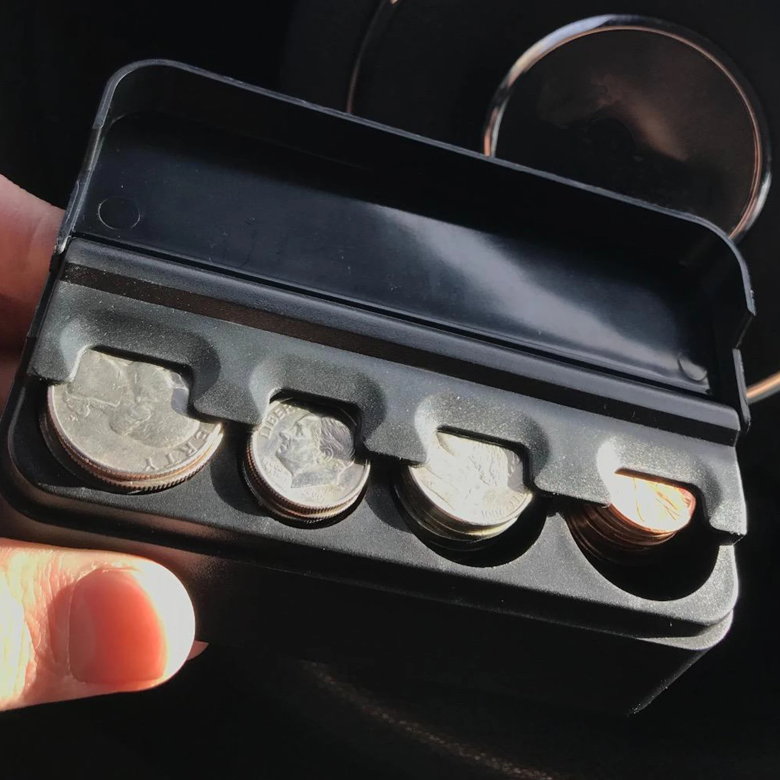 Я купил это, потому что мой грузовик не пришел с держателем для монет. Самое большое положительное, что я вижу с ним, это то, что он прочный. Пружины обеспечивают хорошее напряжение для монет, размещенных в нем, и в целом он просто чувствует себя солидно. Есть два четверти слотов, копейки/Пенни слота и никель слота.