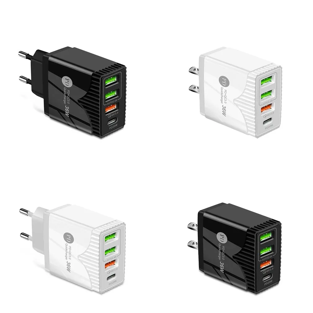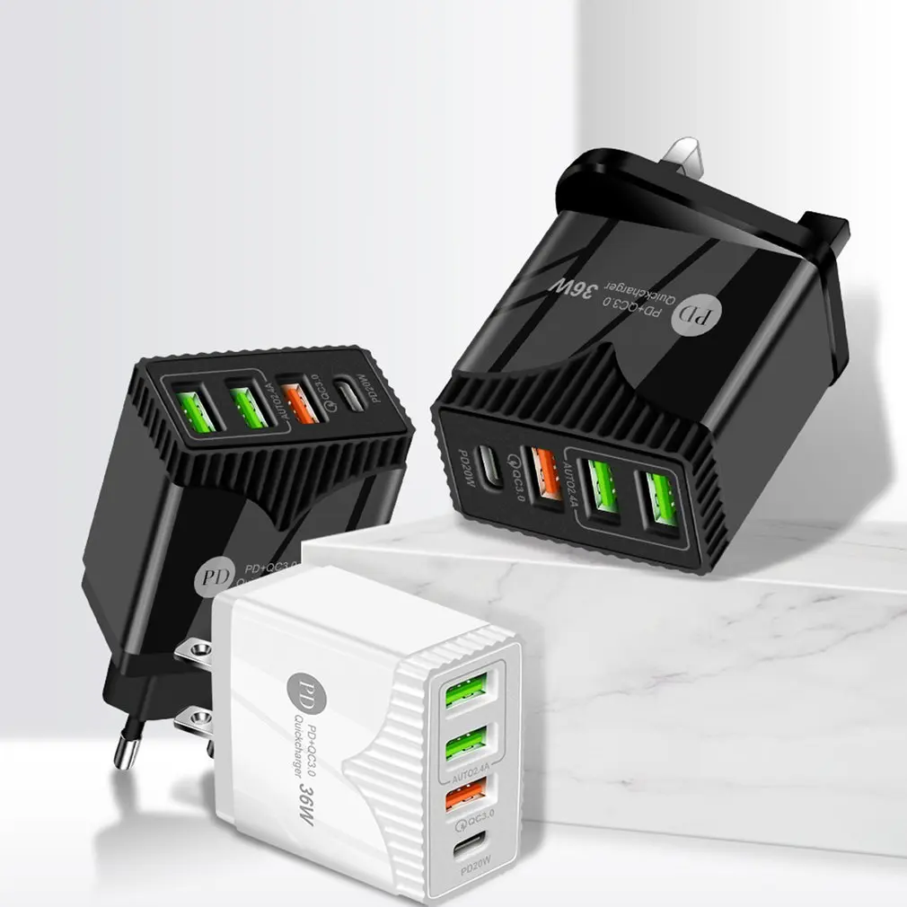Зарядное устройство, 36 Вт, pd 20 Вт, быстрая зарядка, 5 В, 6 А, зарядная головка, порт 3 А + порт 1 с, легкое зарядное устройство мобильный телефон