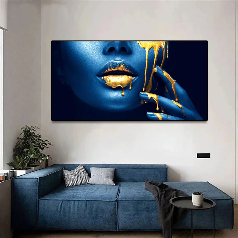Холст с Африканской женщины золотые сексуальные губы живопись абстрактная африканская Обнаженная женщина плакаты принты Настенная картина для гостиной декоративная живопись