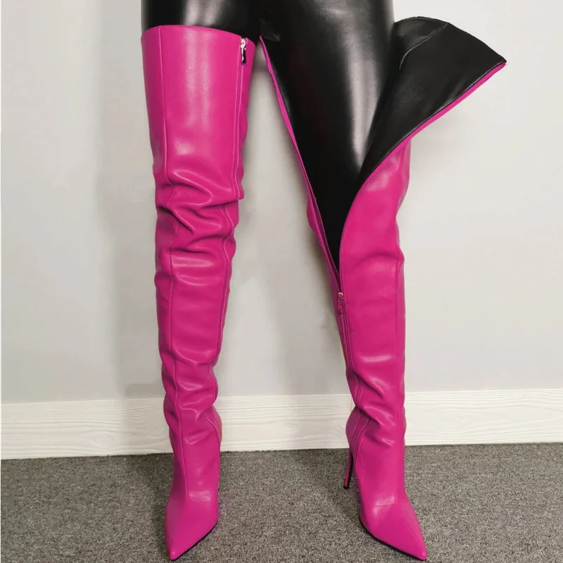 Пикантные женские сапоги до бедра с острым носком Сапоги выше колена на высоком каблуке с боковой молнией размера плюс 43 2021 г. Новая женская обувь осень-зима