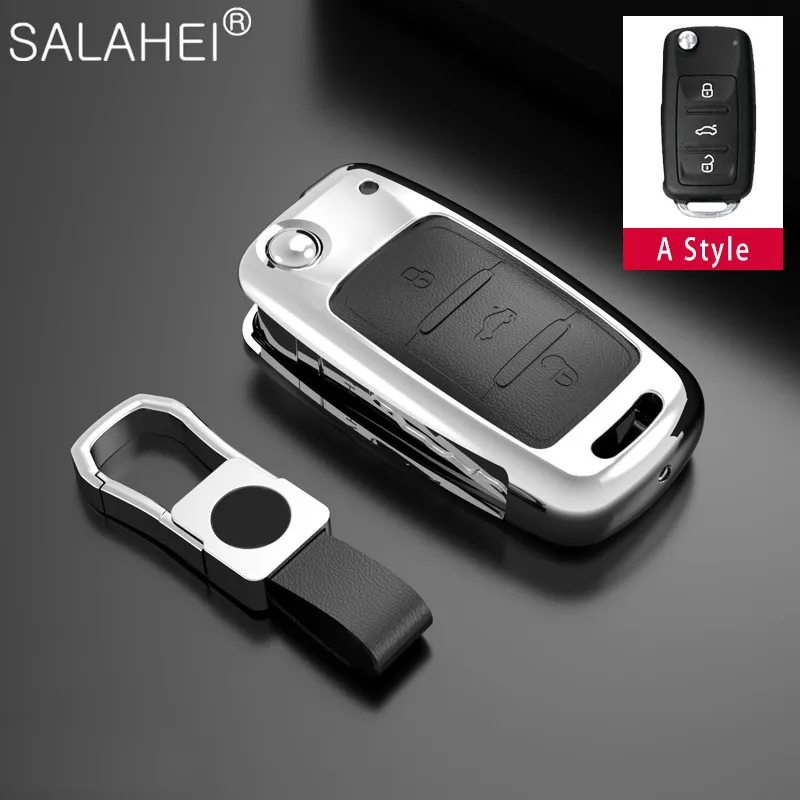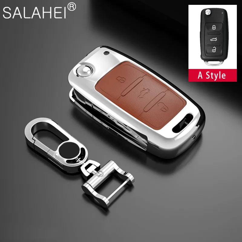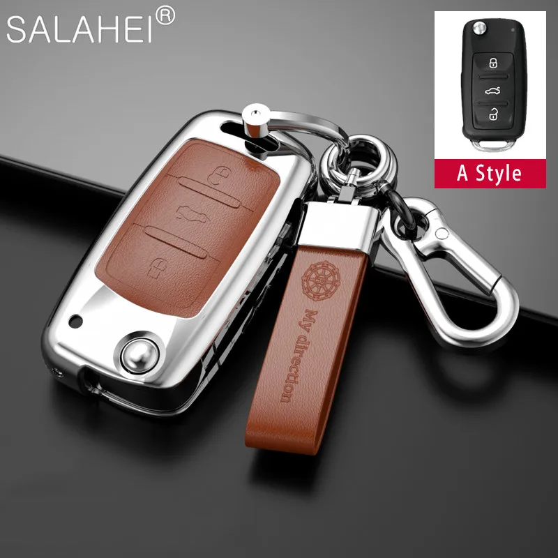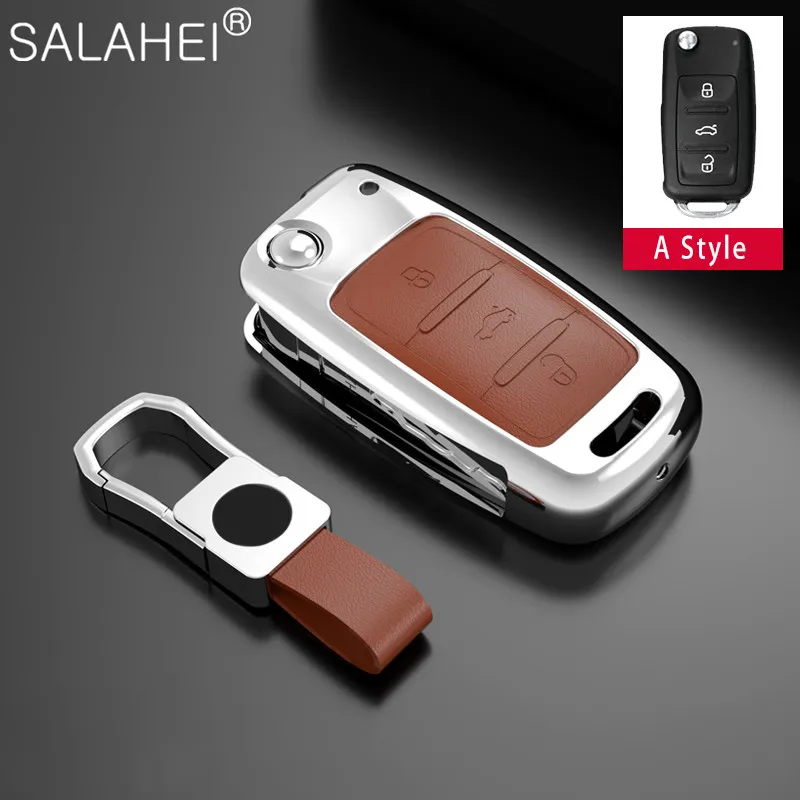 Чехол для автомобильного ключа из цинкового сплава и кожи, чехол для VW Volkswagen Polo Golf Passat Beetle Caddy T5 Up Eos Tiguan SkodaA5 SEAT Leon Altea