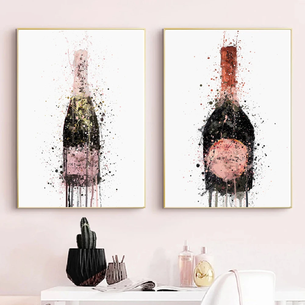 Скандинавский стиль Шампанское граффити холст картина плакат печатные настенные абстрактные картины для кухни прикроватный фон домашний декор