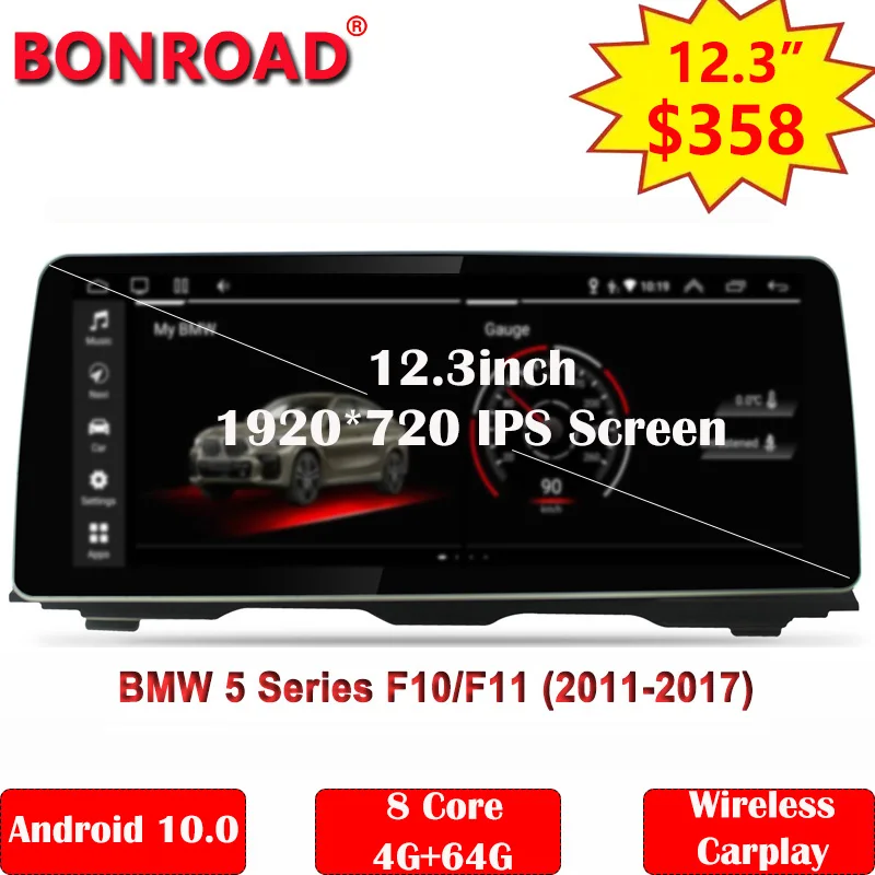 Автомобильный мультимедийный проигрыватель, 12,3 дюймов, Android 10,0, 1920*720P, IPS, 4G, Rom64G, для BMW 5 Series, F10, CICNBT 2011-2017, Wi-Fi