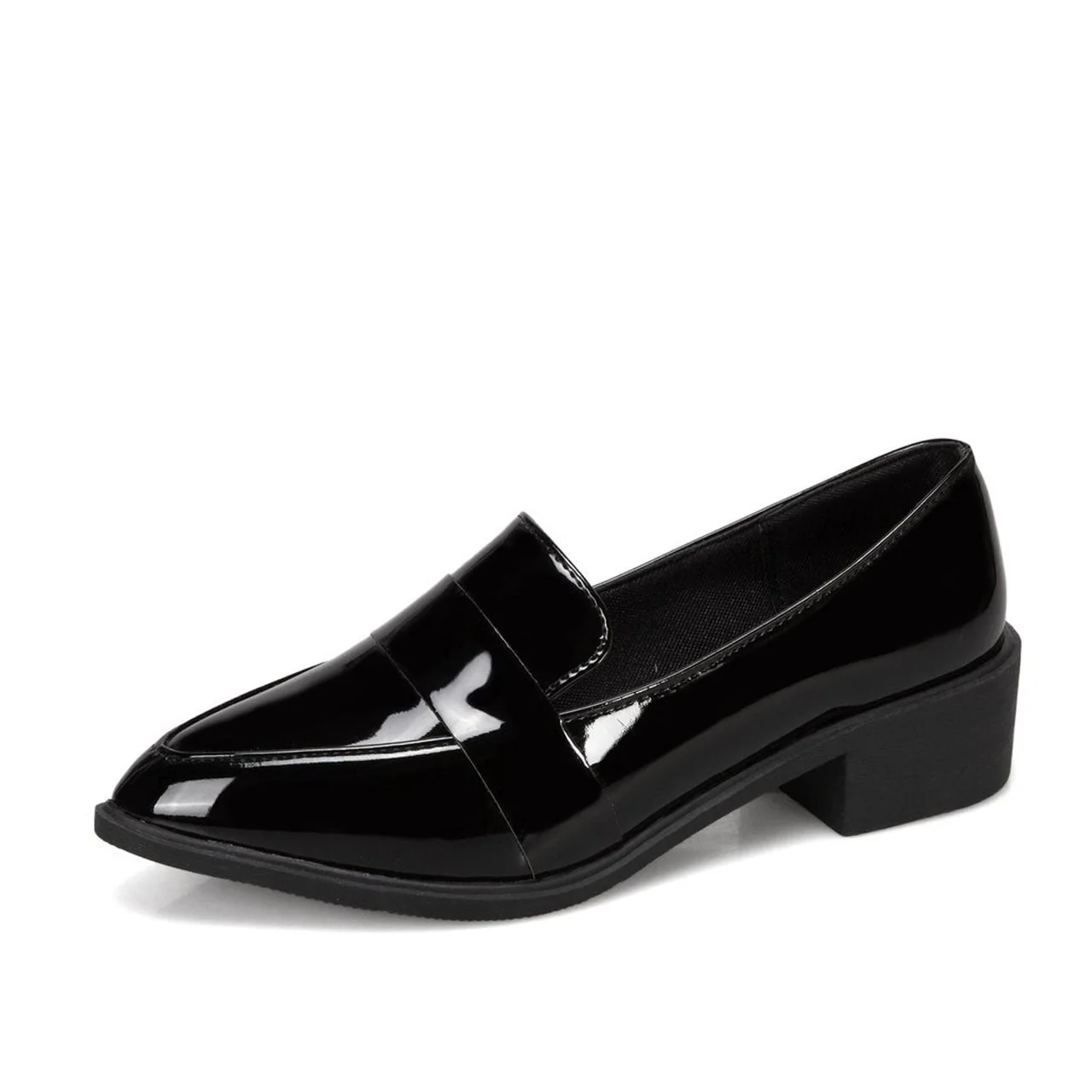 Туфли-оксфорды женские из лакированной кожи, Классические лоферы, заостренный носок, в ретро стиле, 8155C, черные, весна-осень