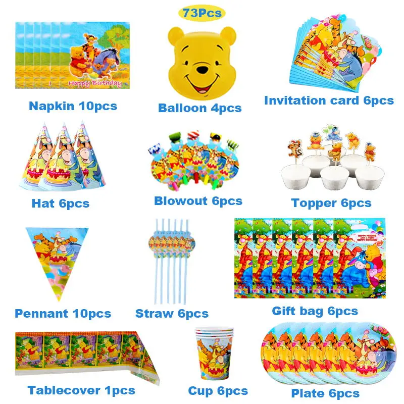 73 шт., бумажные тарелки на день рождения Винни-Пух, чашки, одноразовые наборы посуды, украшения для детского дня рождения