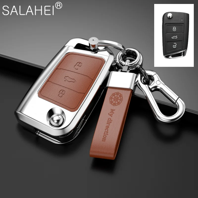 Zinc Alloy + Leather Car Key Case For Volkswagen VW Polo Golf 7 MK7 Tiguan passat For Skoda Octavia Kodiaq For Seat Ateca LeonNote:please check your car key before shipping!!!Production description:item name:Car key case for VWColor:Silver-black,Silver-brown,Black-black,Black-brownMaterial: Zinc Alloy + LeatherFeature:1,100% brand new and high quality2,protection and decoration your car key3,Does not effect signal transmission and reception4,Easy touch5,Completely wrap your car key.Important Notice:1.This item isn't a remote,it is just a remote key shell case replacement.2.There is NO interior (remote/electronics/transponder chip)unit inside.3. The pictures are for reference only