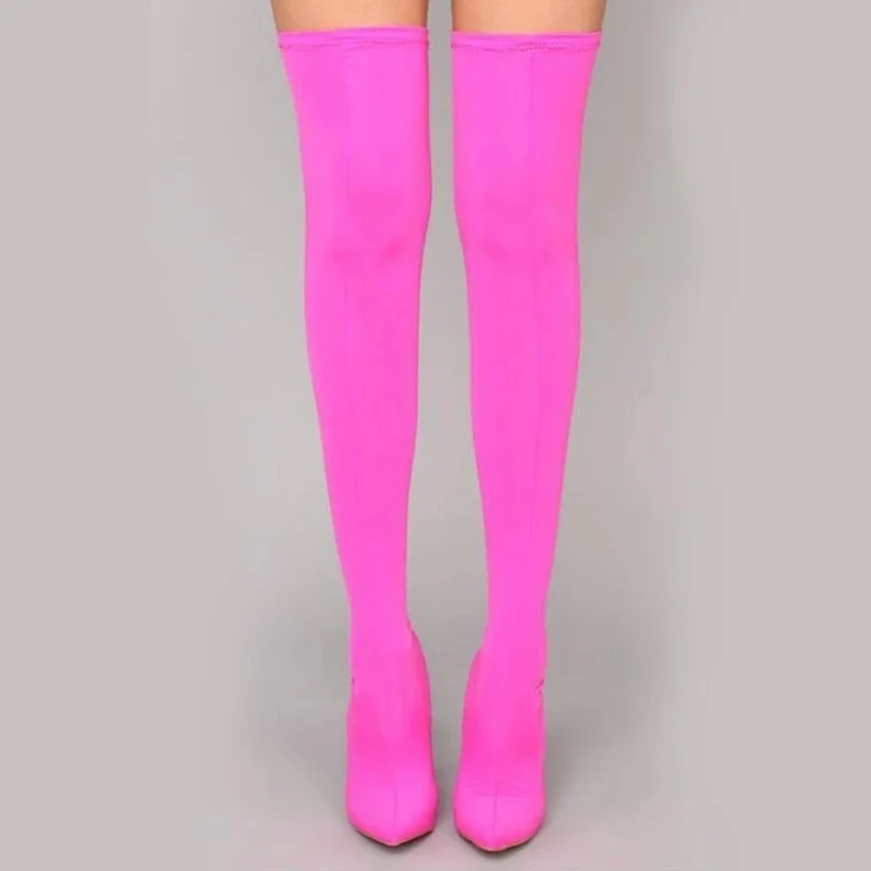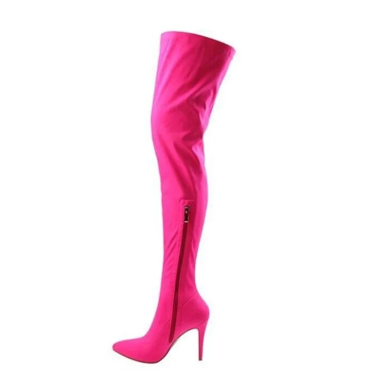 Женские ботфорты стрейч, Замшевые Сапоги выше колена на высоком каблуке, с молнией сбоку, Осень-зима 2021