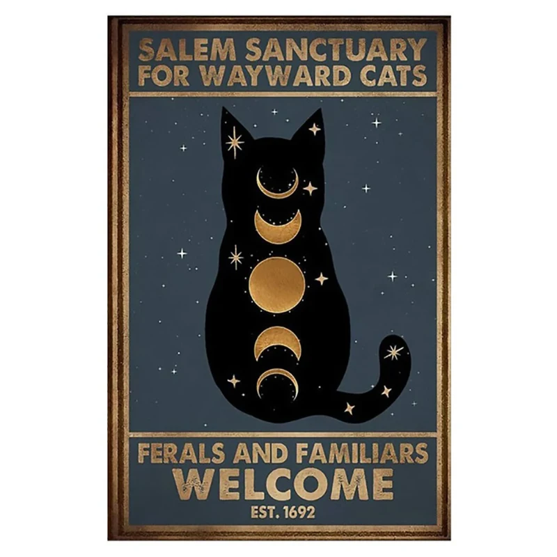 Металлическая жестяная вывеска в стиле ретро с изображением черного кота и кофе