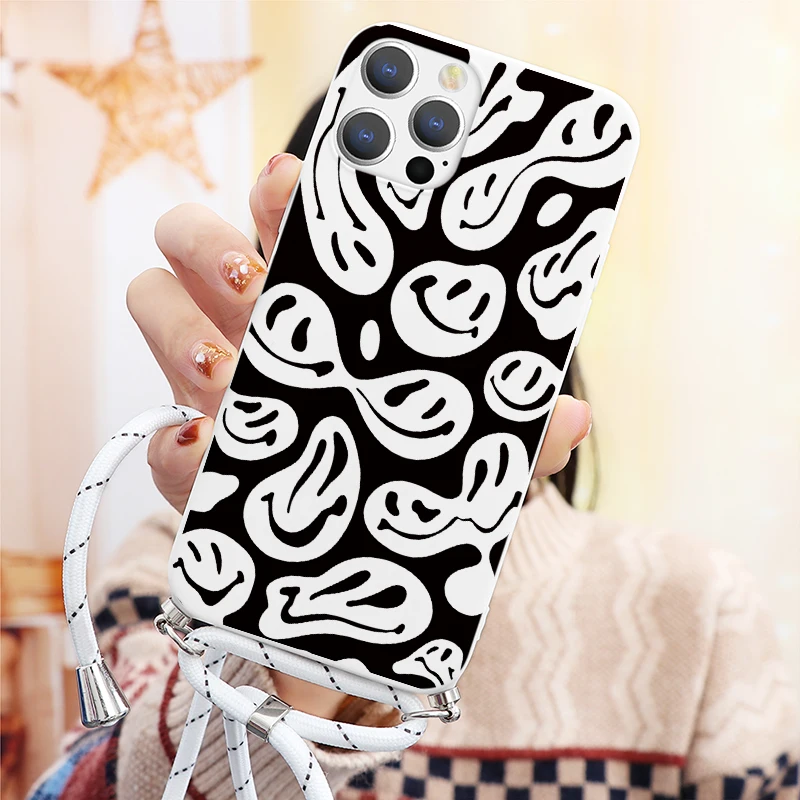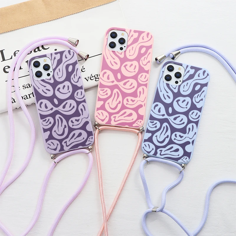 Милые Мультяшные чехлы с ожерельем и ремешком через плечо для iPhon...