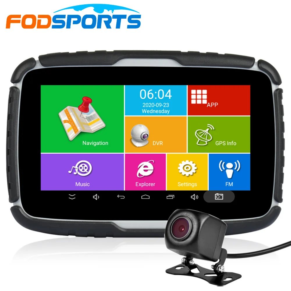 Fodsports 5,0-дюймовый мотоциклетный GPS-навигатор, система Android 6,0, аксессуары для мото-навигатора, зажим для зарядки + камера DVR