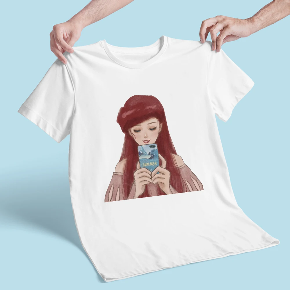Футболка детская с рисунком Русалочки Ариэль, рубашка с рисунком маленькой принцессы и селфи, летняя одежда в стиле Харадзюку для маленьких девочек