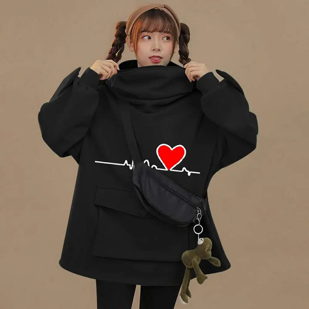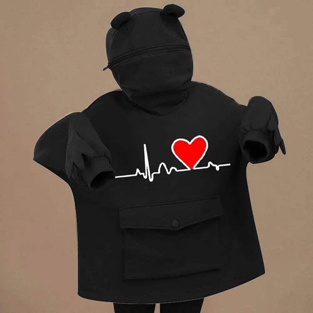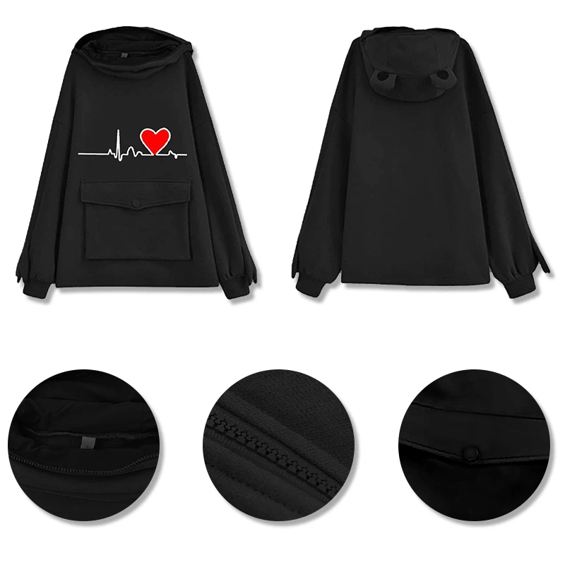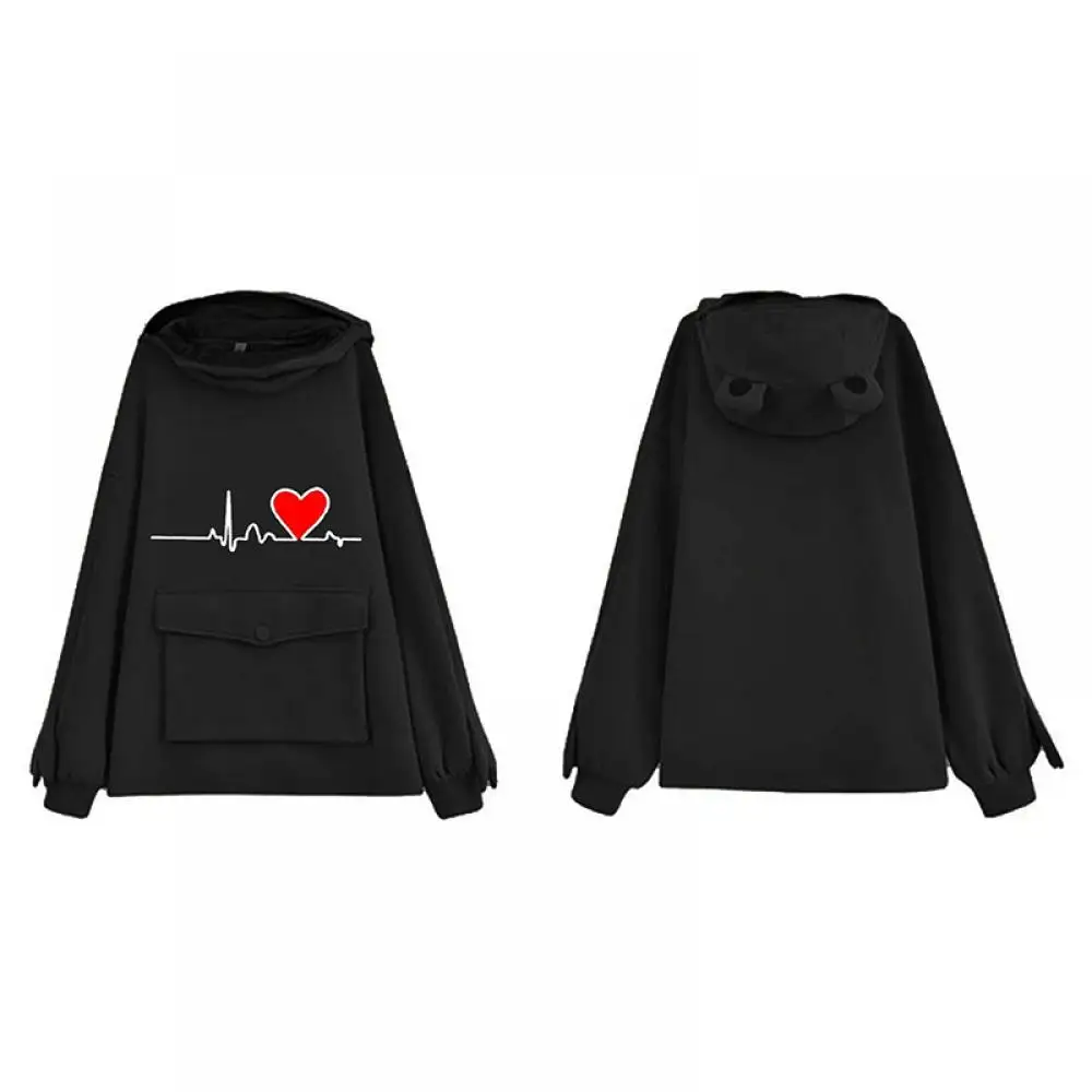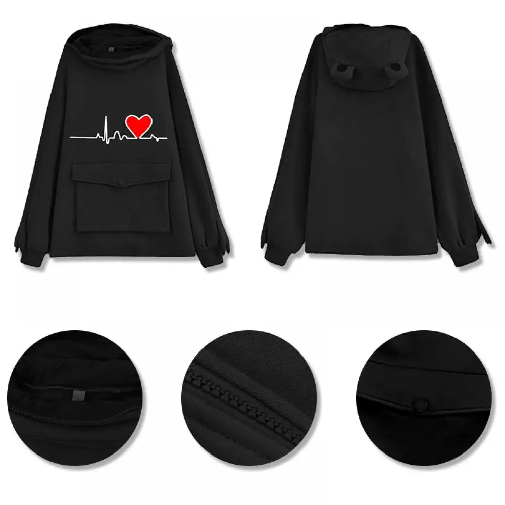 Женский Свитшот с капюшоном Frogs в форме сердца, ЭКГ, трехмерный п...