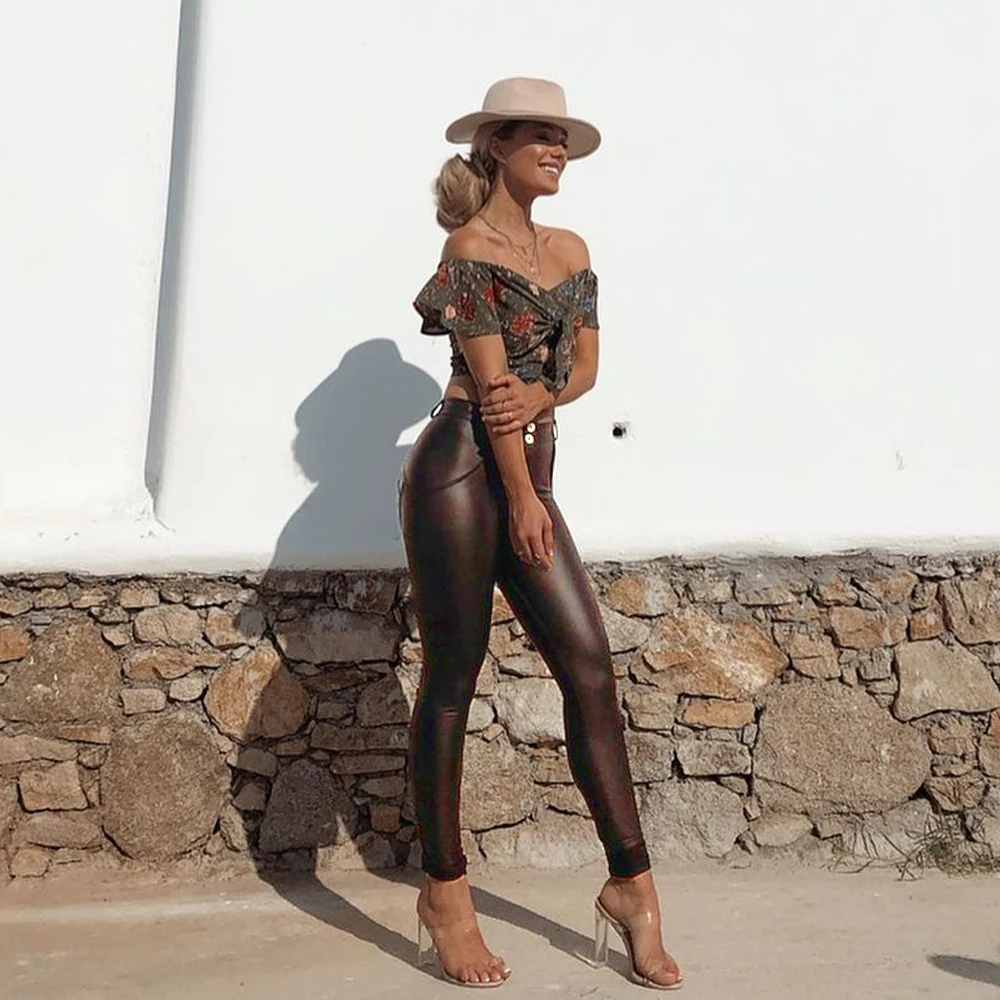 Кожаные леггинсы Shascullfits Melody, спортивные колготки Пуш-ап, женские брюки из экокожи, коричневые брюки без животных