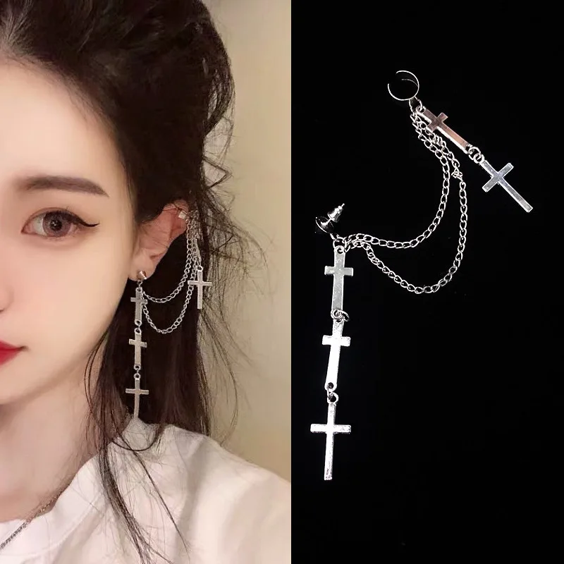 Новые серьги-гвоздики с крестом для женщин корейские модные готичес...