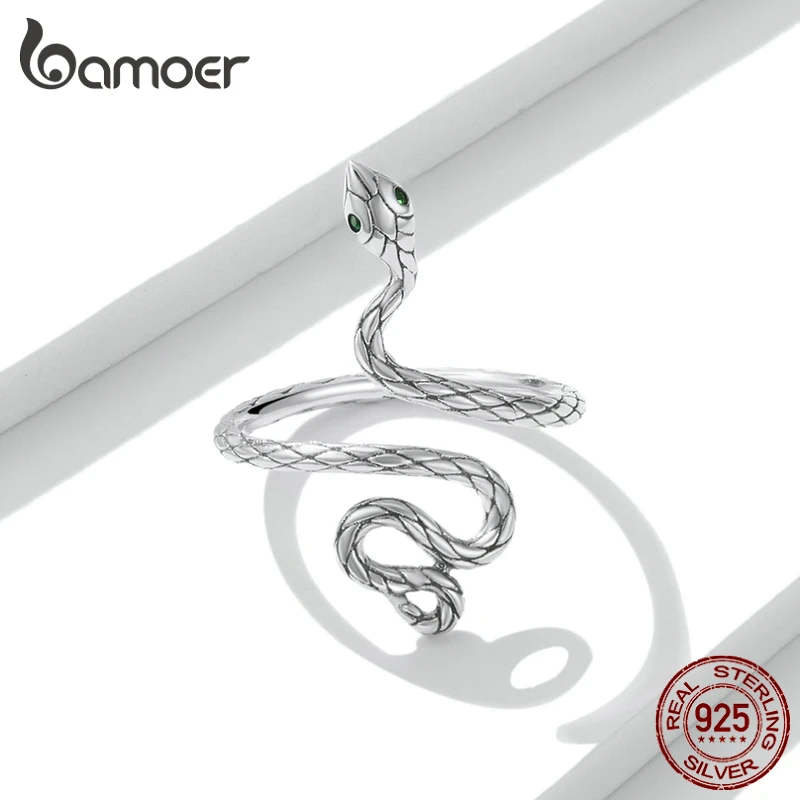 ❤【Description】Inspired по стилистике змеи тело змеи богато натуральной текстурой, яркой и реалистичной; А глаза серебряной змеи усеяны черными цирконами, изысканно сияющими. Кольцо в виде змеи имеет уникальную форму и ретро-индивидуальность.❤【Материал】 серебро 925 пробы и паве с фианитами и окисленным серебром, не содержит никель, свинец, кадмий, гипоаллергенный. Гарантия качества, приятный для кожи, удобный и удобный в носке, не вредный для вашего здоровья.❤【Для подарка 】 это уникальное оригинальное дизайнерское крутое кольцо красиво упаковано и готово для подарка. Купите сюрприз сейчас.❤【BAMOER YOU】 чтобы обеспечить ваше полное удовлетворение, любые вопросы о продукции BAMOER, просто не стесняйтесь обращаться к нам, мы постараемся сделать все возможное, чтобы помочь вам.