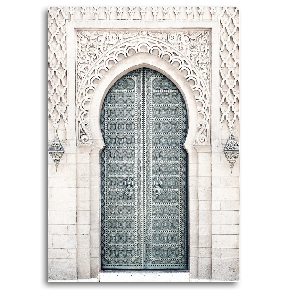 Бохо Марокканская дверь Марракеш холст картина на стену искусство печать синий зеленый богемный бежевый картины плакаты гостиная домашний декор