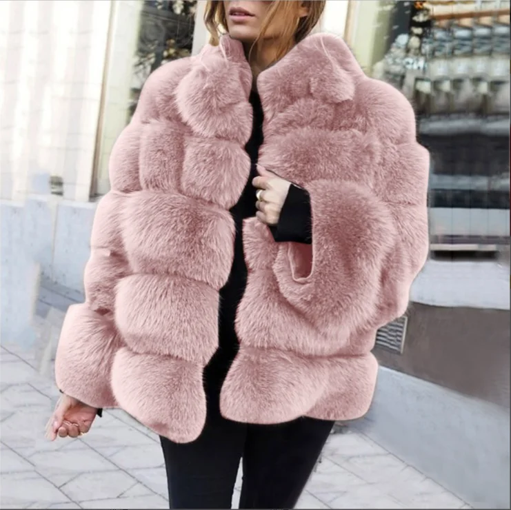 Длинное шерстяное пальто свободного покроя с лацканами, утолщенное теплое женское плюшевое зимнее пальто из искусственного меха, Женское пальто из искусственного лисьего меха горизонтально, st