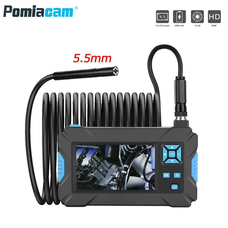 4,3 дюймов промышленный ЖК-монитор эндоскоп ручной бороскоп 5,5 мм жесткий кабель камера 1080P HD видео инспекционная камера 2 м 5 м