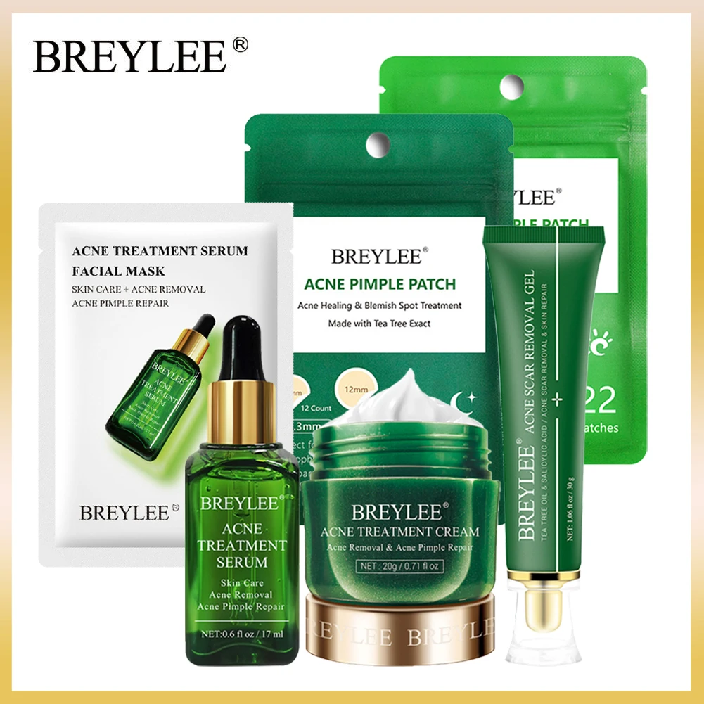Набор для лечения акне лица BREYLEE, сужение пор, контроль жирности, Удаление прыщей, Глубокая очистка, отбеливание пор, нежная Сыворотка для ухода за кожей