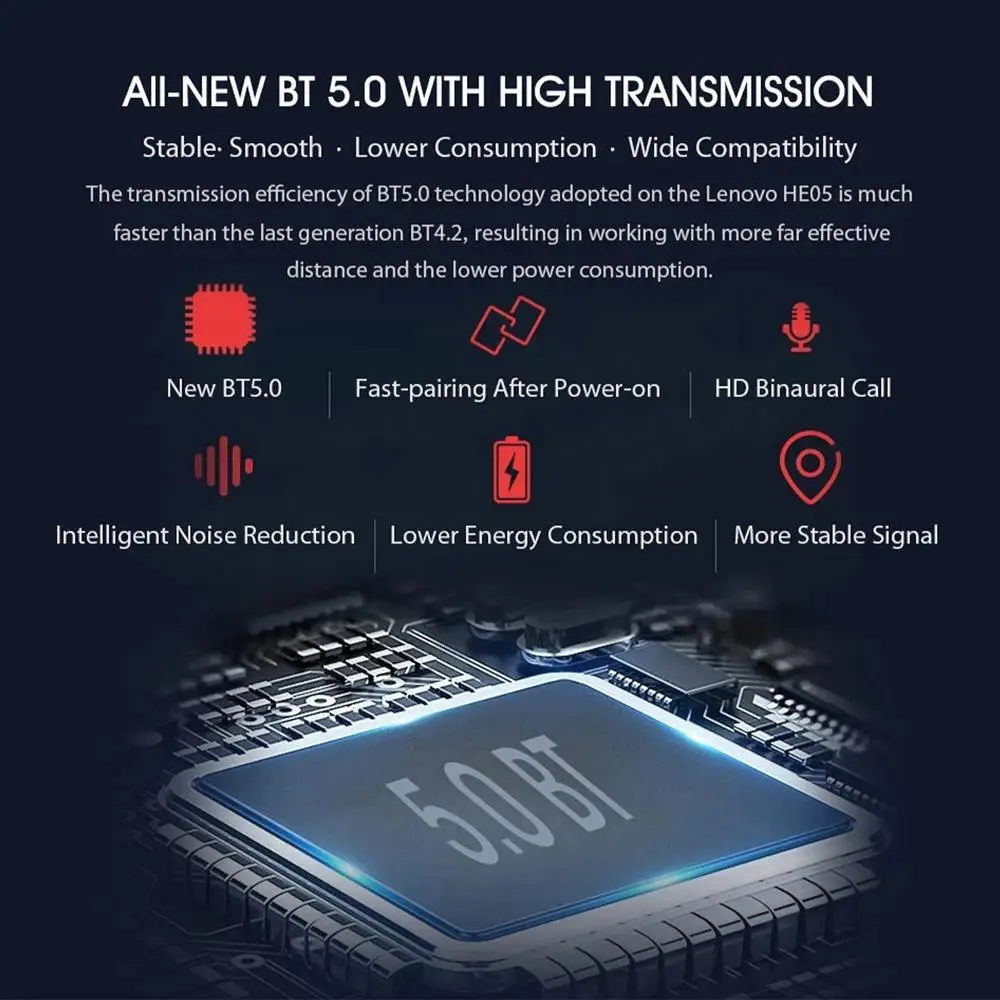 Беспроводная Bluetooth-гарнитура Lenovo HE01 с шейным ободом, Hi-Fi стерео-наушники для музыки, магнитные спортивные наушники со встроенным микрофоном