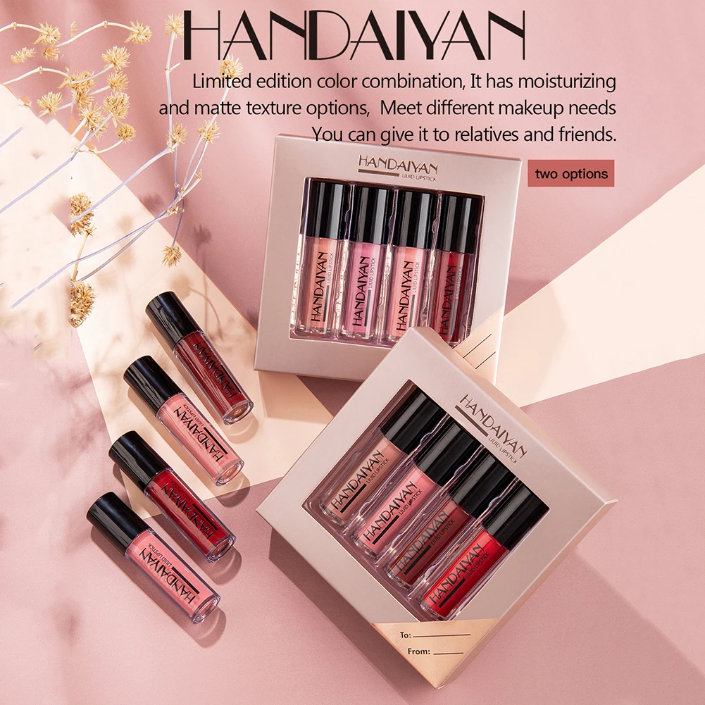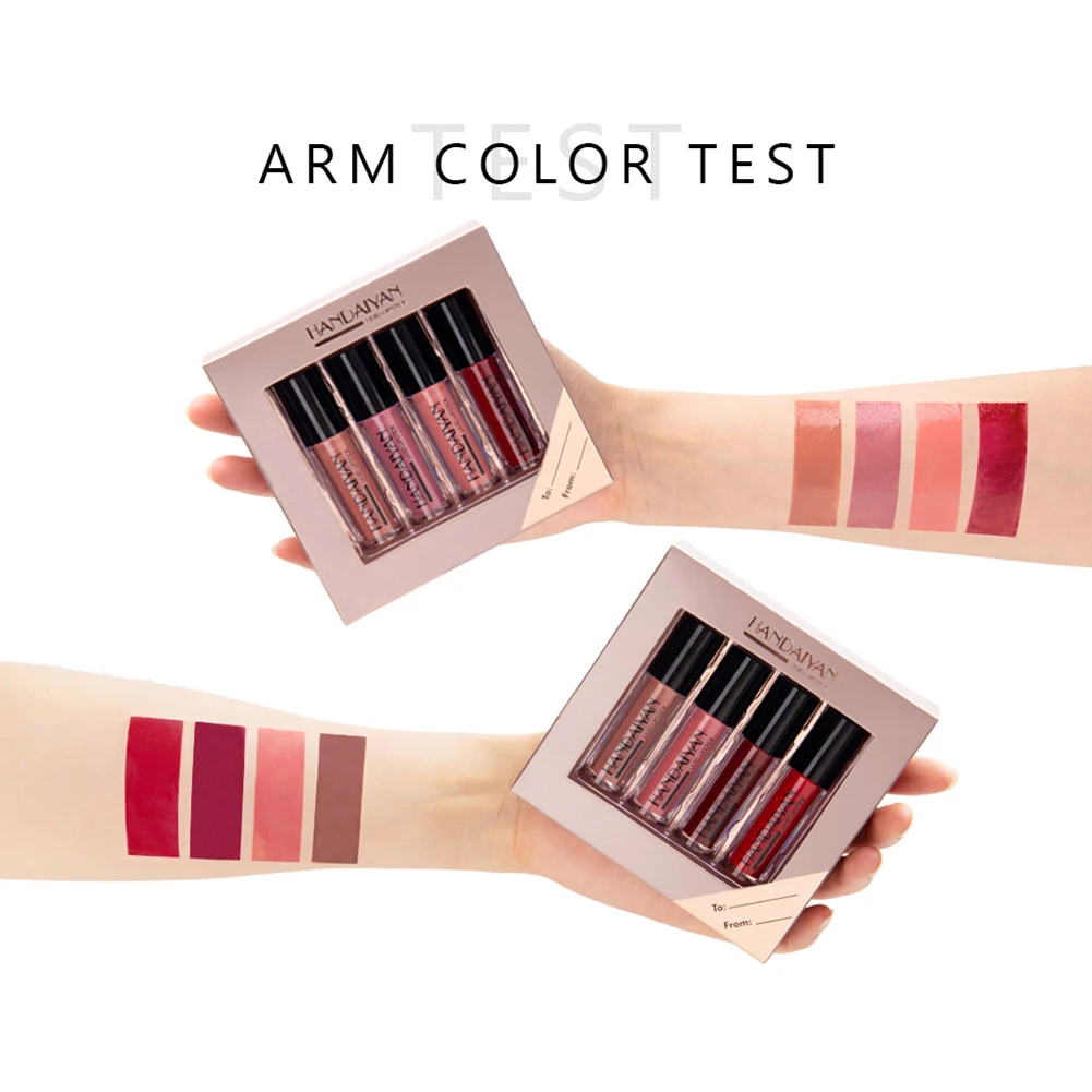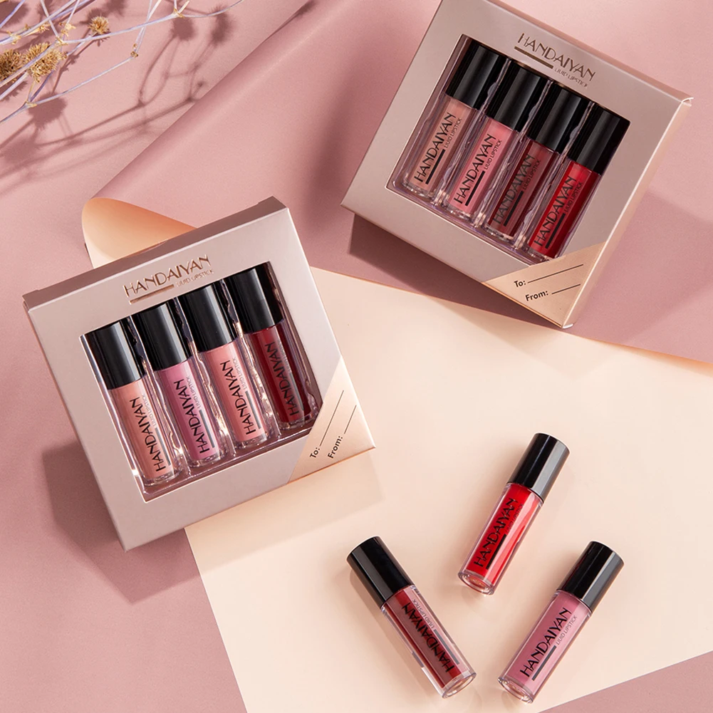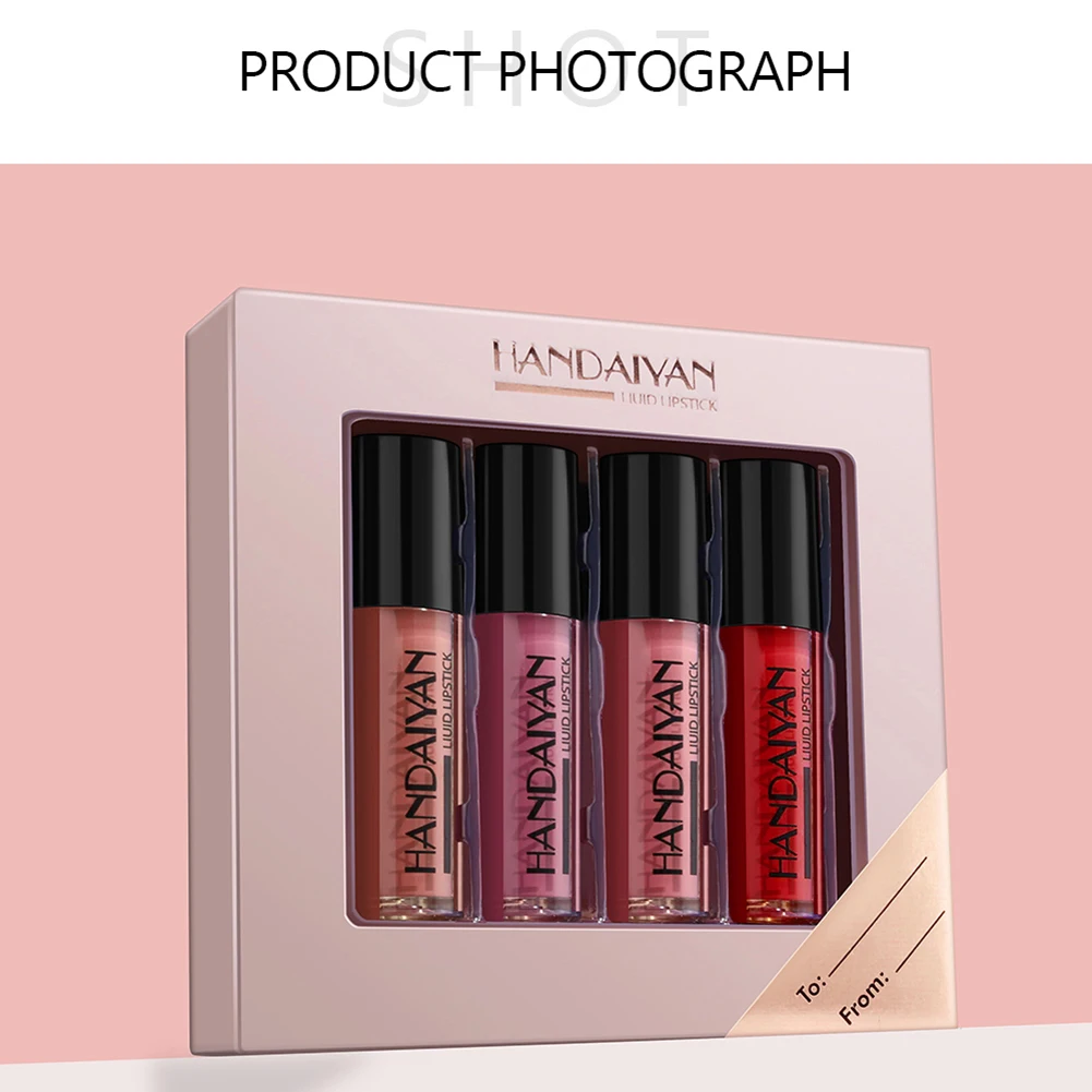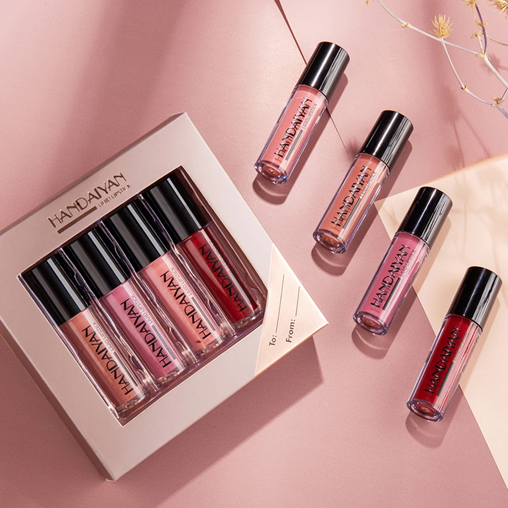 Набор помад 4 цветов, набор матовых блесков для губ, улучшающий сухость, стойкий освежающий нежирный натуральный увлажняющий макияж губ