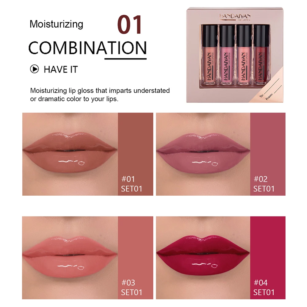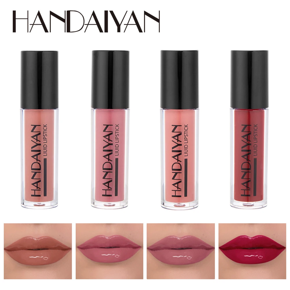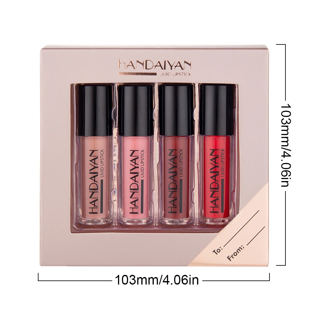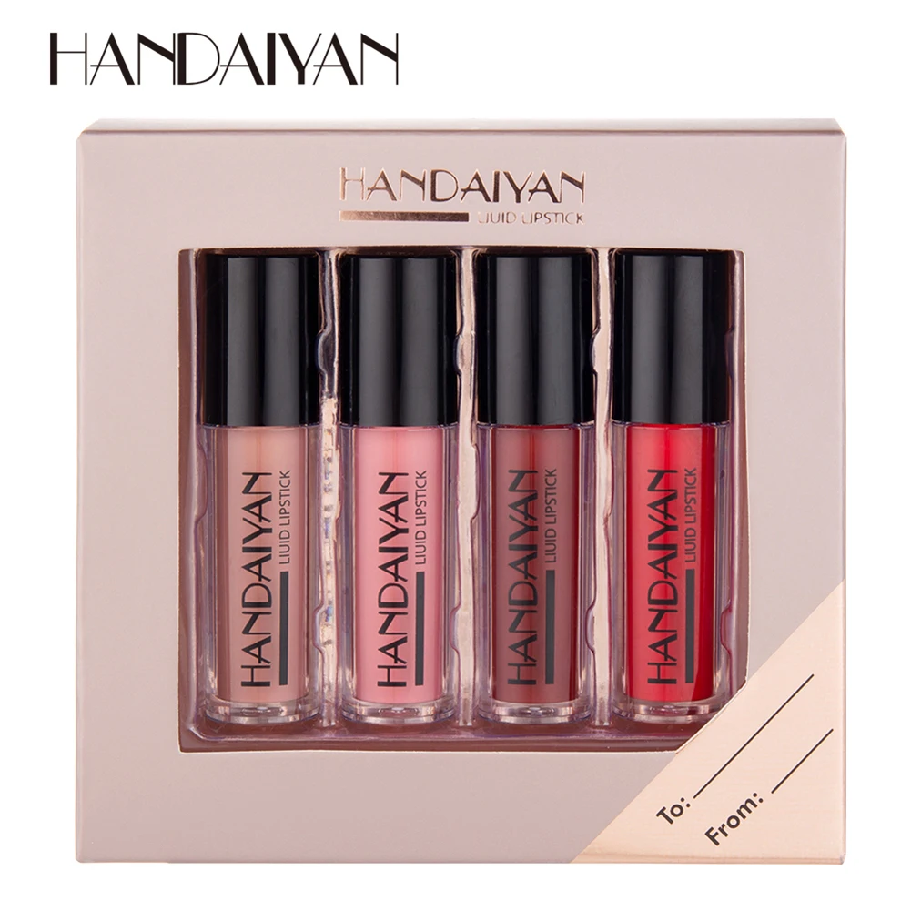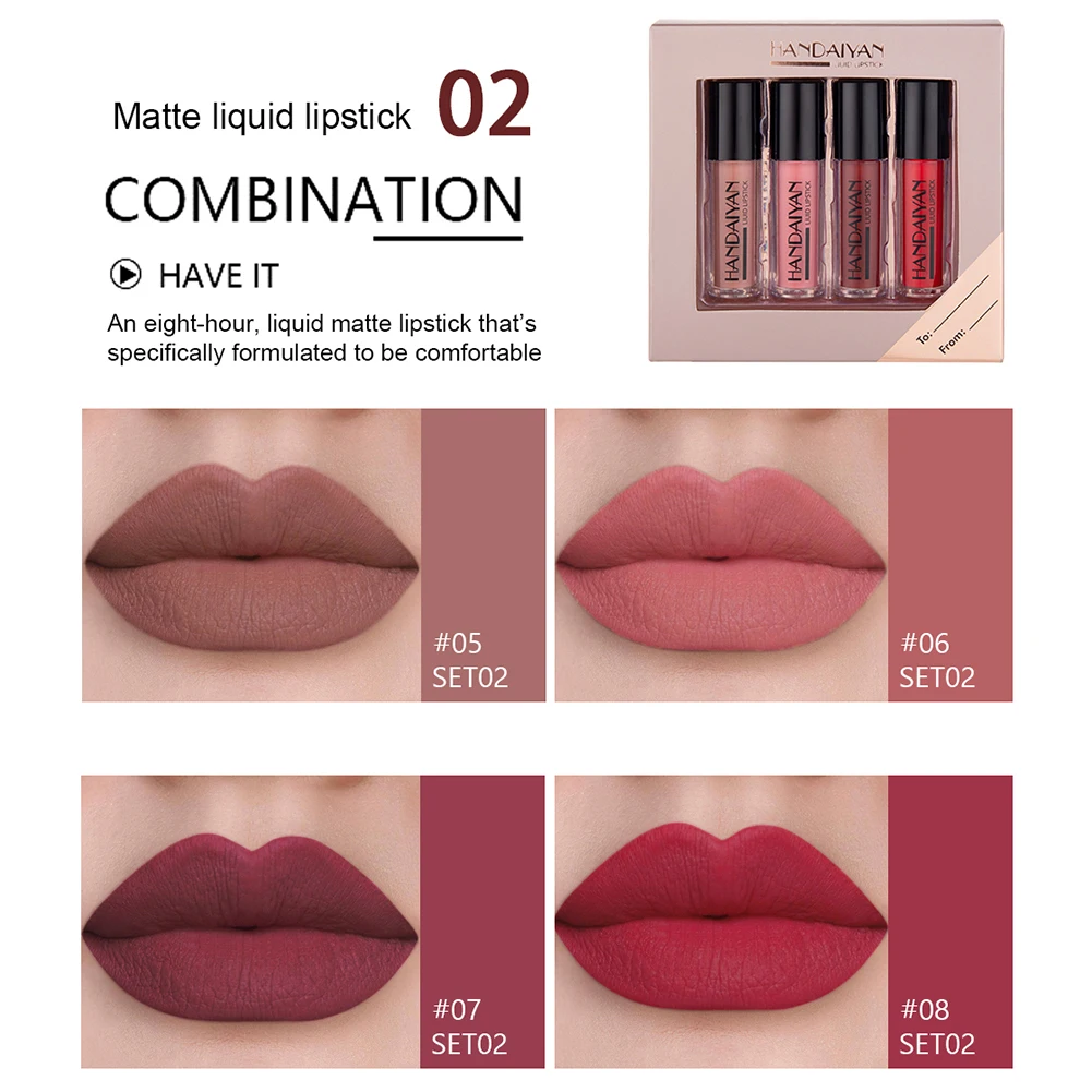 Набор помад 4 цветов, набор матовых блесков для губ, улучшающий сухость, стойкий освежающий нежирный натуральный увлажняющий макияж губ