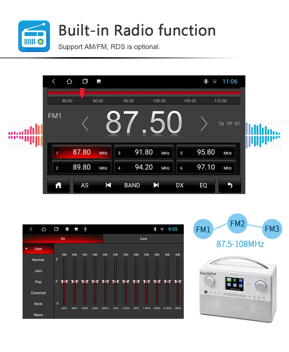 Автомобильное радио x 1 шт. (встроенная карта)Разъем питания x 1 шт.USB кабель x 2 шт.Кабель RCA x 1 шт.Антенна GPS x 1 шт.Входной кабель камеры заднего вида x 1 шт.