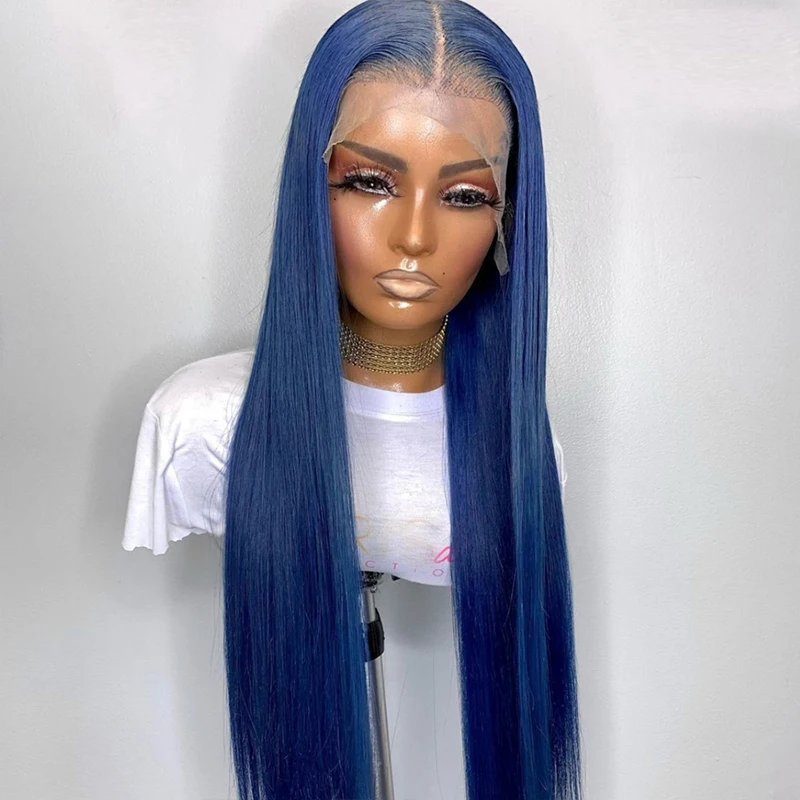 Прямой парик фронта шнурка темно-синие парики человеческих волос бразильские волосы Реми темно-синие 13x 4 парики фронта шнурка кость прямой парик волос
