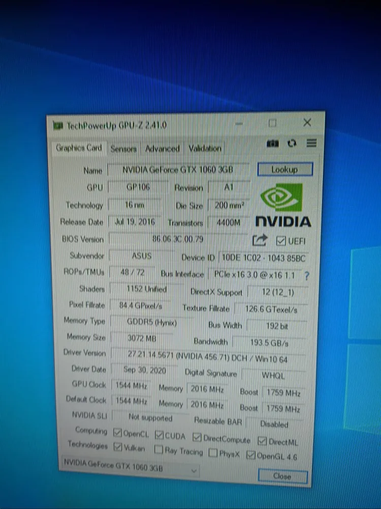 Продукт пришел, работающий верно только не скачанный techPowerUp, чтобы перейти больше afundo, но знайте, что это верно... 1060 3GB en был наложен, может доверять