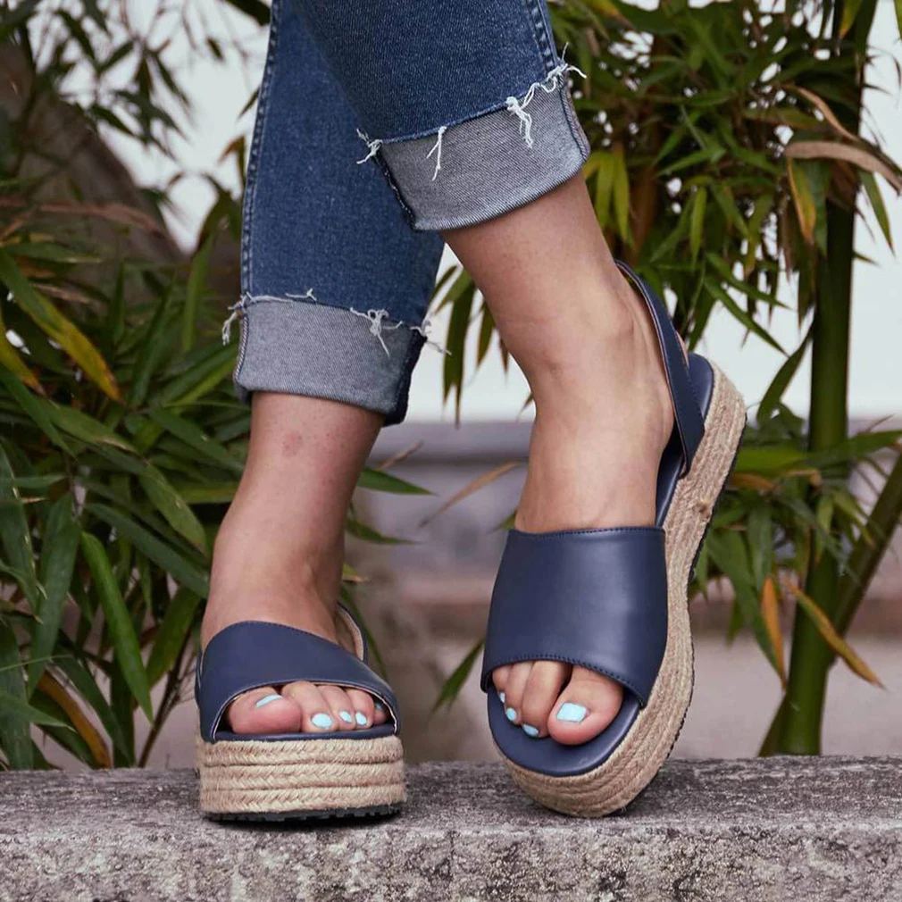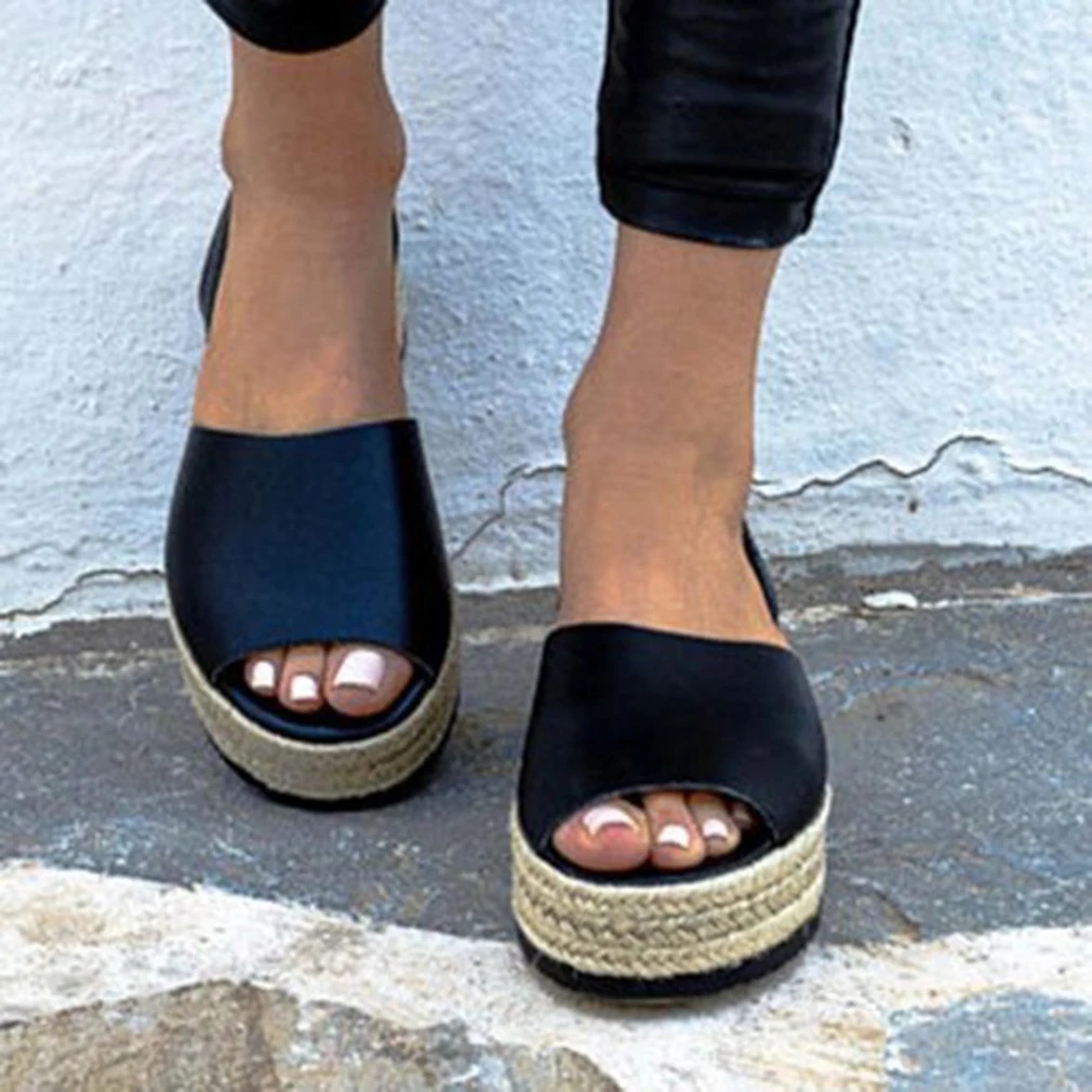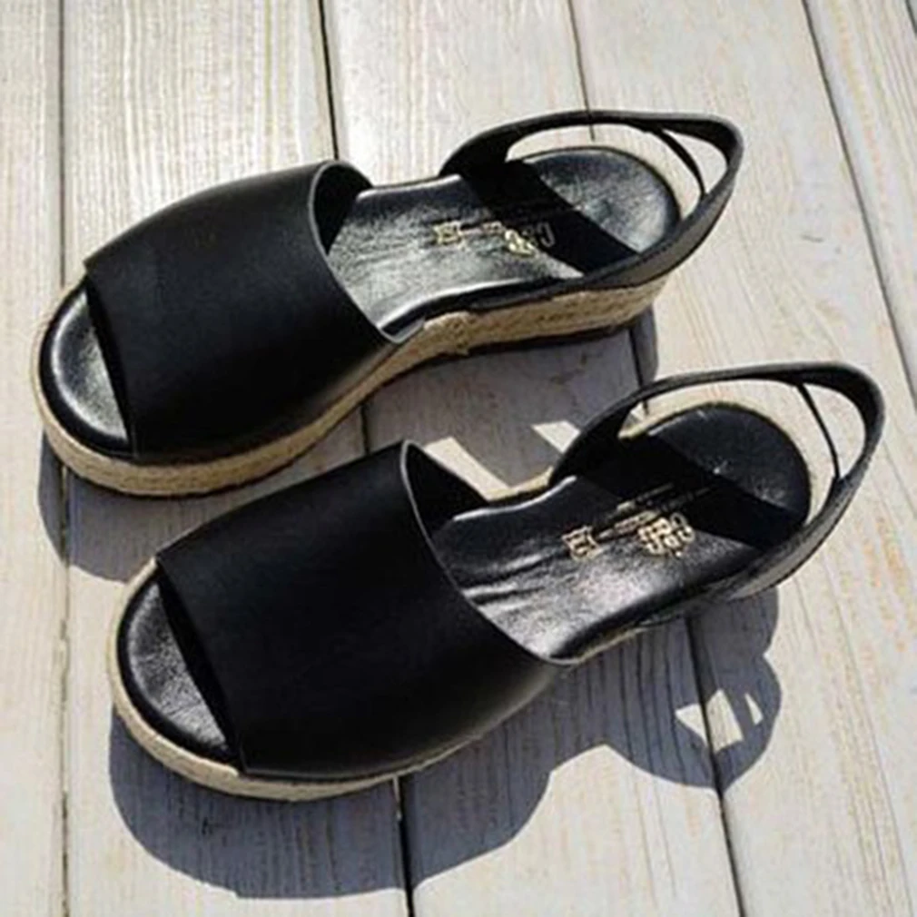 Женские босоножки на танкетке размера плюс; Летние туфли на высоком каблуке; Вьетнамки; Chaussures Femme; Плетеные Босоножки на платформе в римском стиле; 2019