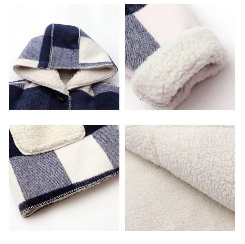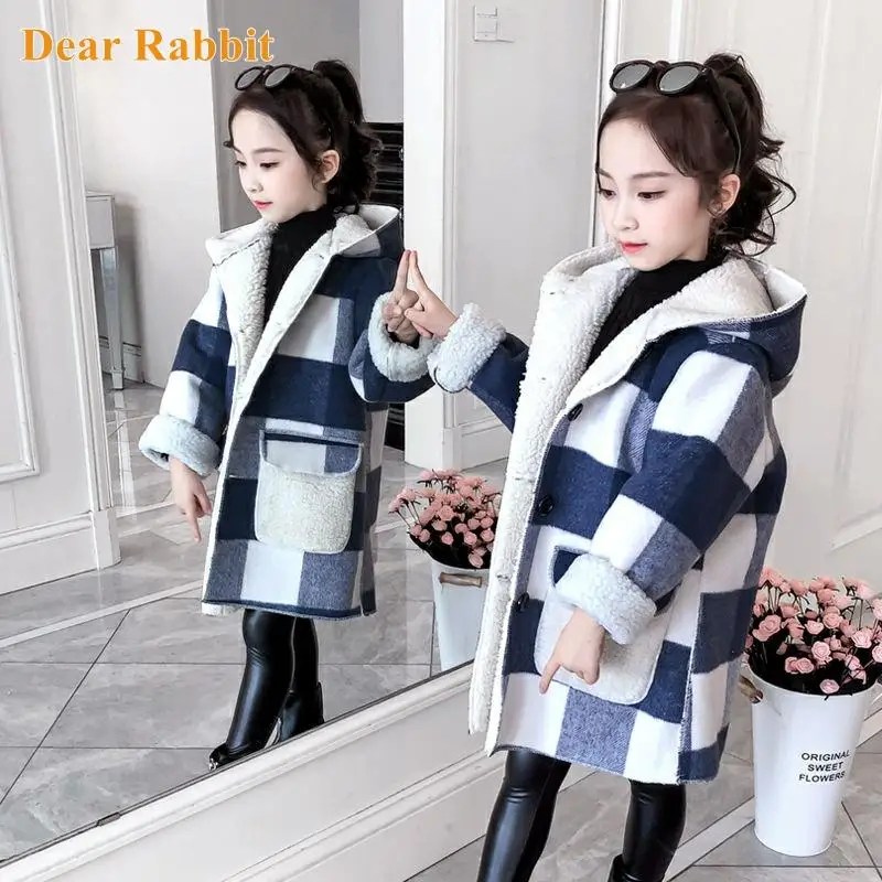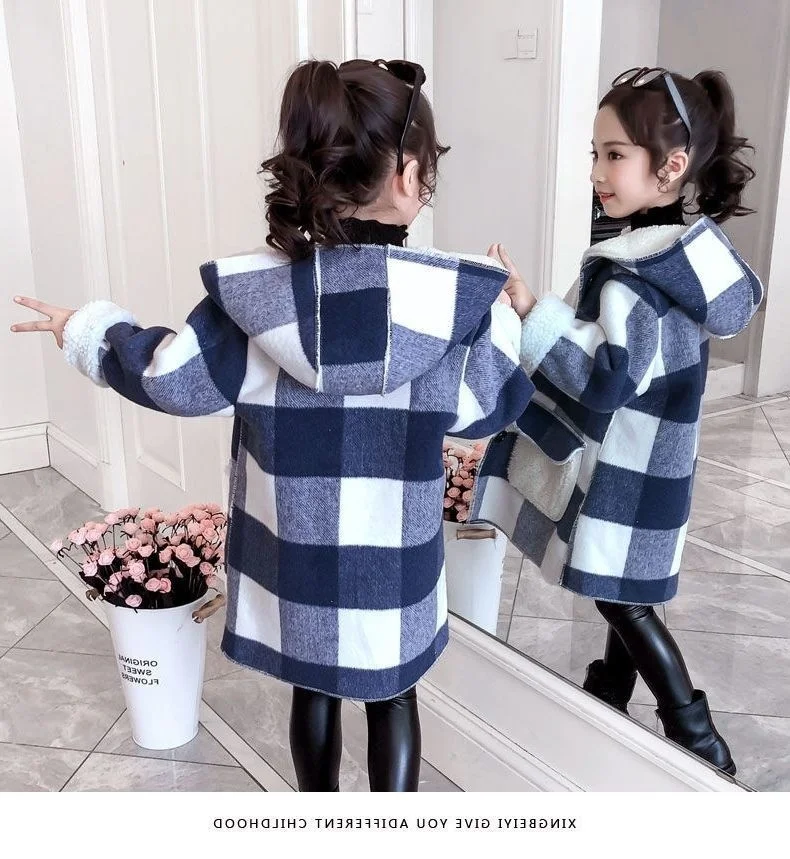 Куртки для девочек; Осенне-весенняя одежда; Ветровка средней длины для девочек; Модная детская одежда в клетку из овечьей шерсти; Пальто